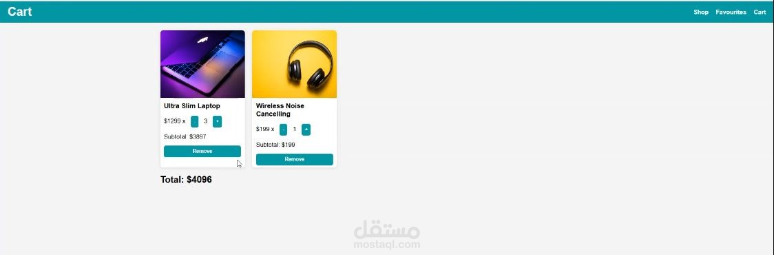 خاصية حذف المنتجات وتحديث السلة في الوقت الفعلي.