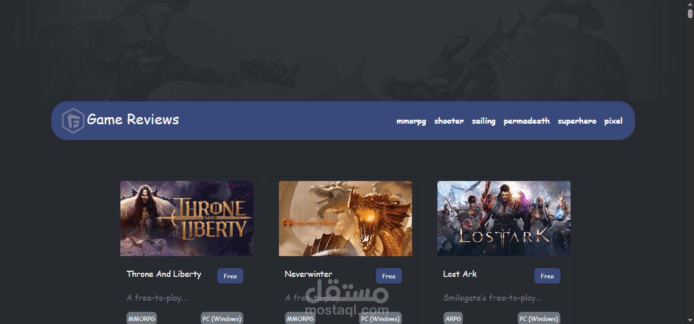 موقع يعرض الالعاب ويتيح التعرف على تفاصيل اللعبة التى قام باختيارها المستخدم