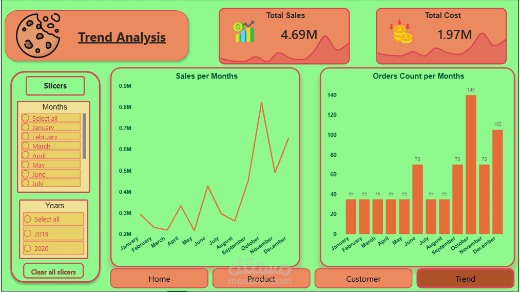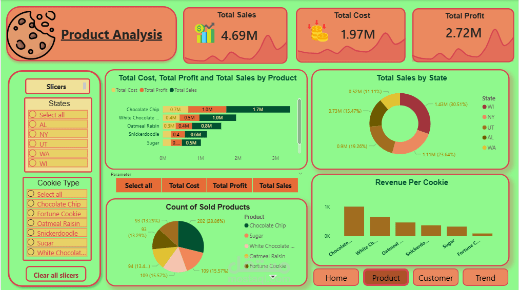 اسم المشروع: لوحة تحكم مبيعات وأرباح المخبوزات (Cookies Sales & Profitability Dashboard)