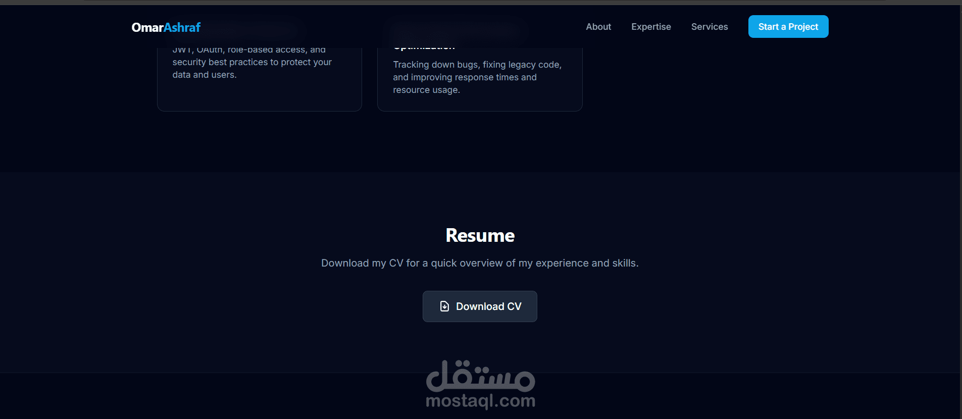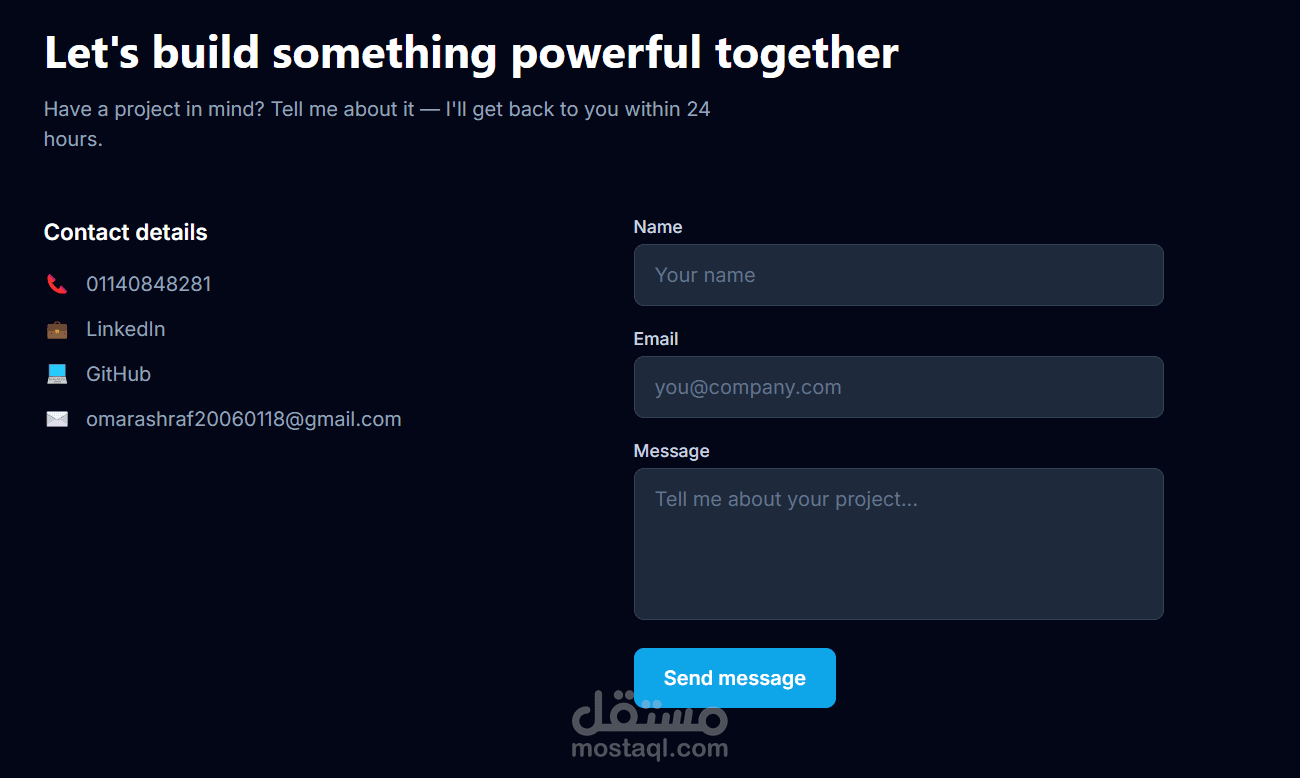 يشمل البورتفوليو أقسامًا لعرض المهارات والمشاريع، وروابط التواصل، وإمكانية إضافة السيرة الذاتية، مع كود منظم قابل للتعديل والتطوير مستقبلًا، وسرعة تحميل عالية تضمن تجربة مستخدم ممتازة.