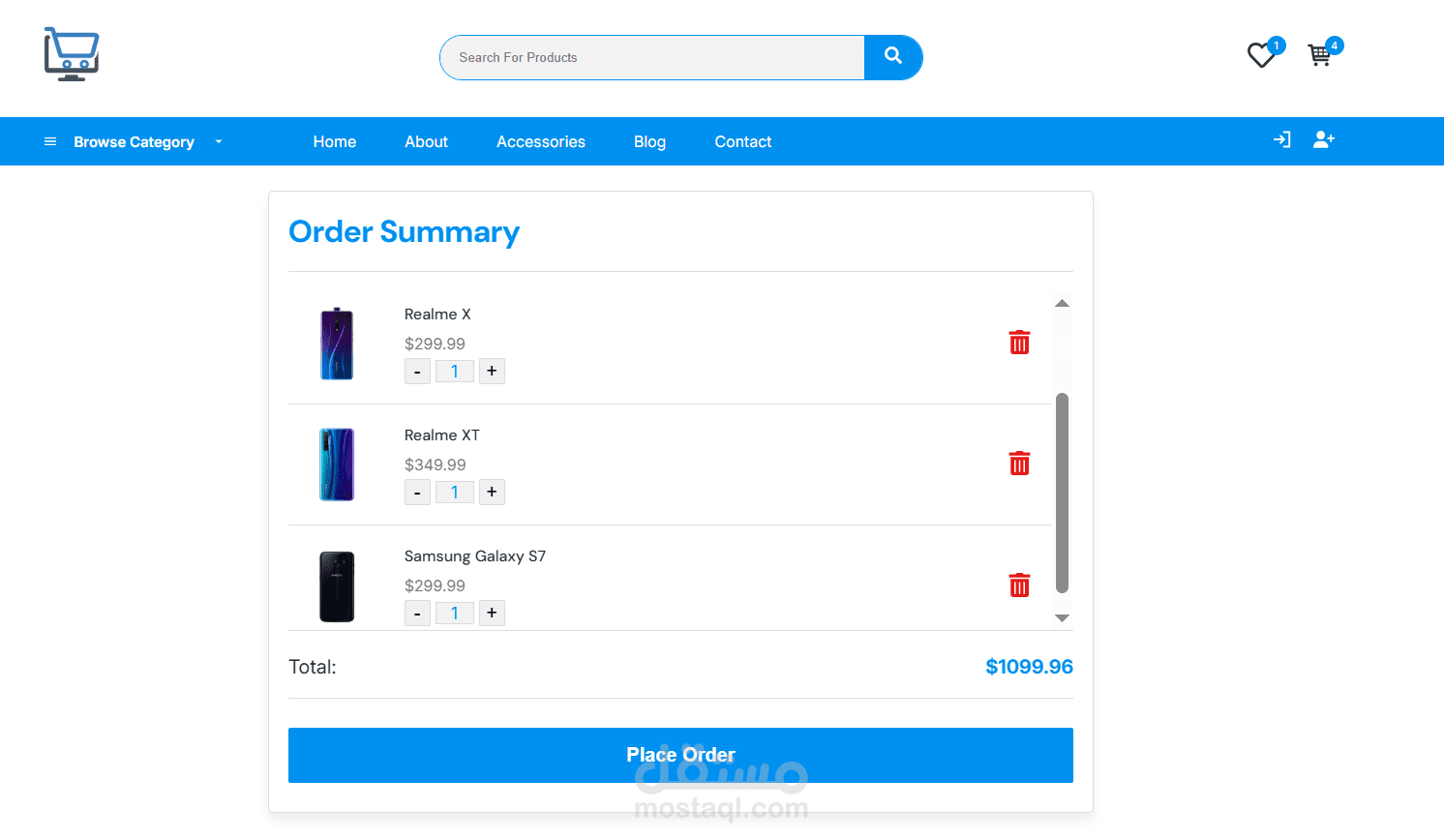 قمت بتطوير متجر إلكتروني باستخدام React.js مع ربطه بـ REST API حقيقي لجلب بيانات المنتجات وعرضها بشكل ديناميكي.