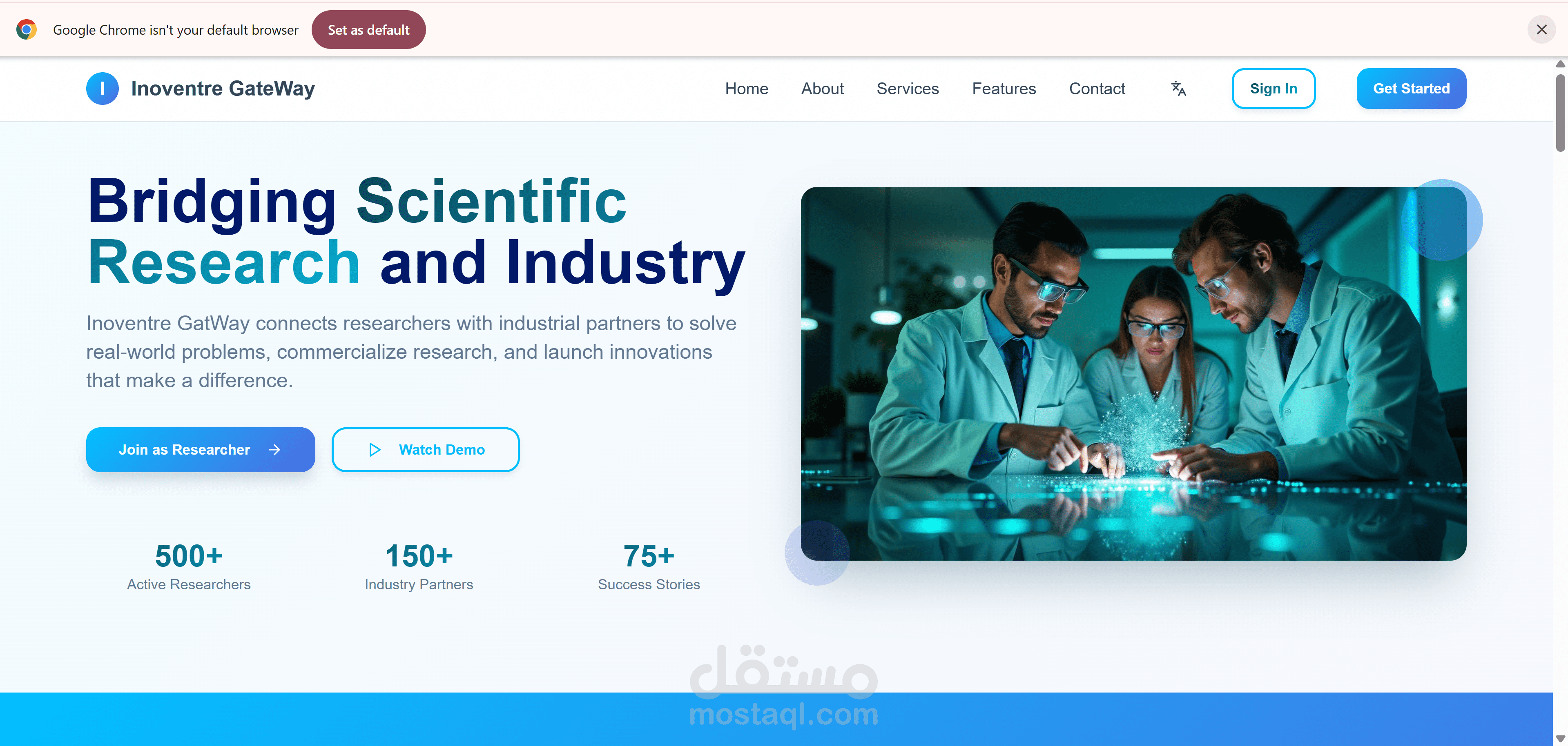 تصميم عصري وتجربة مستخدم (UX/UI): تم بناء واجهة المستخدم لتكون سهلة وسلسة تضمن تفاعل الشركات والباحثين بأقل مجهود.