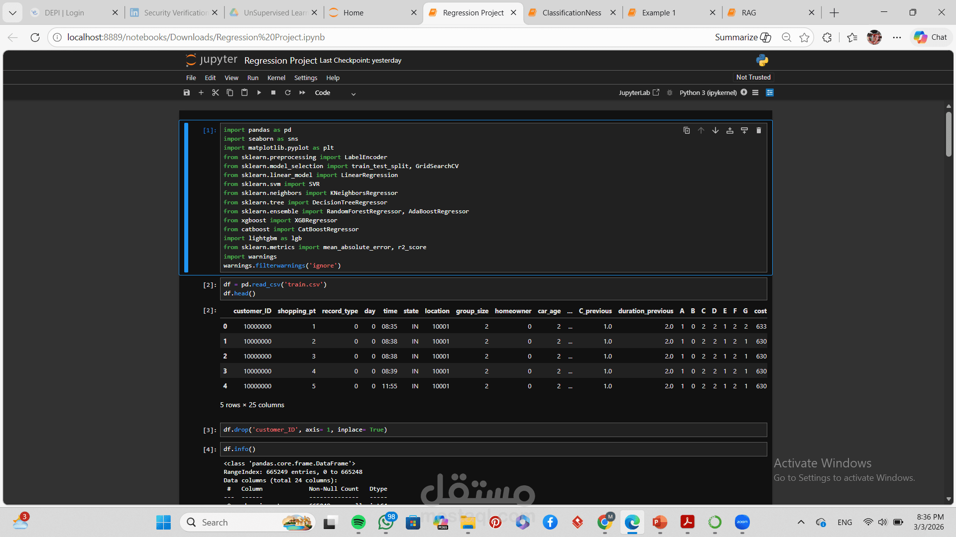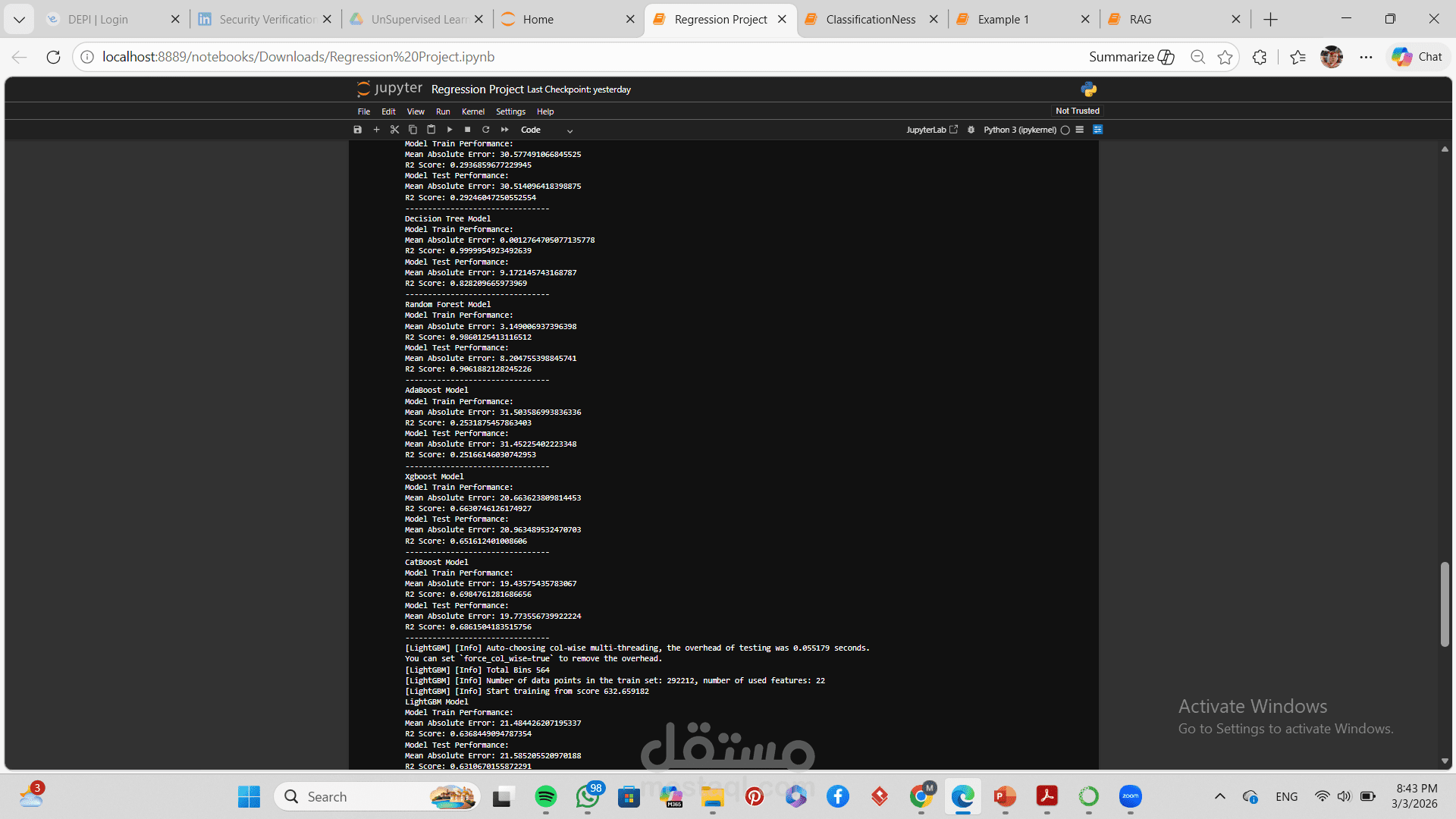 مشروع Machine Learning Regression يهدف إلى التنبؤ بقيم عددية مستمرة (Continuous Values) بناءً على مجموعة من المتغيرات المدخلة (Features).