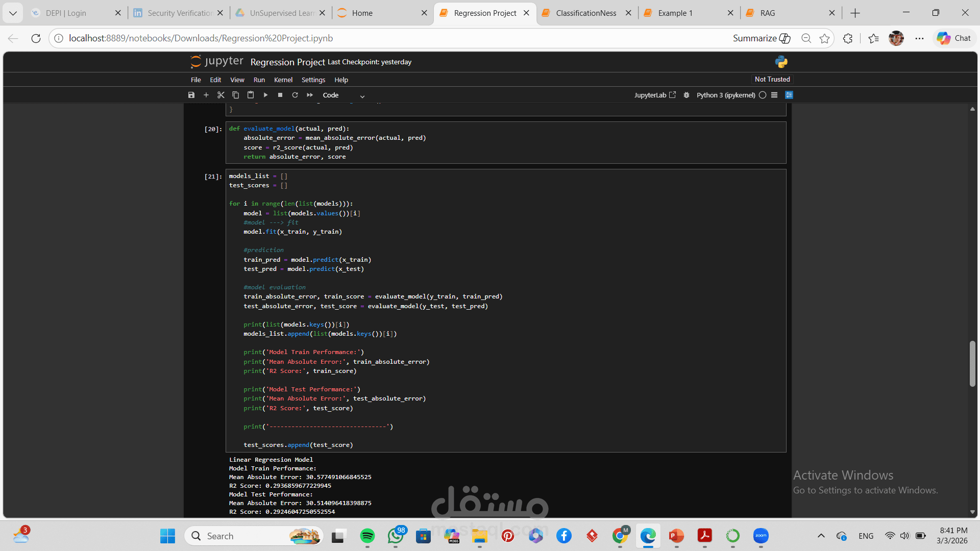 ✔️ تطبيق عدة نماذج انحدار مثل: