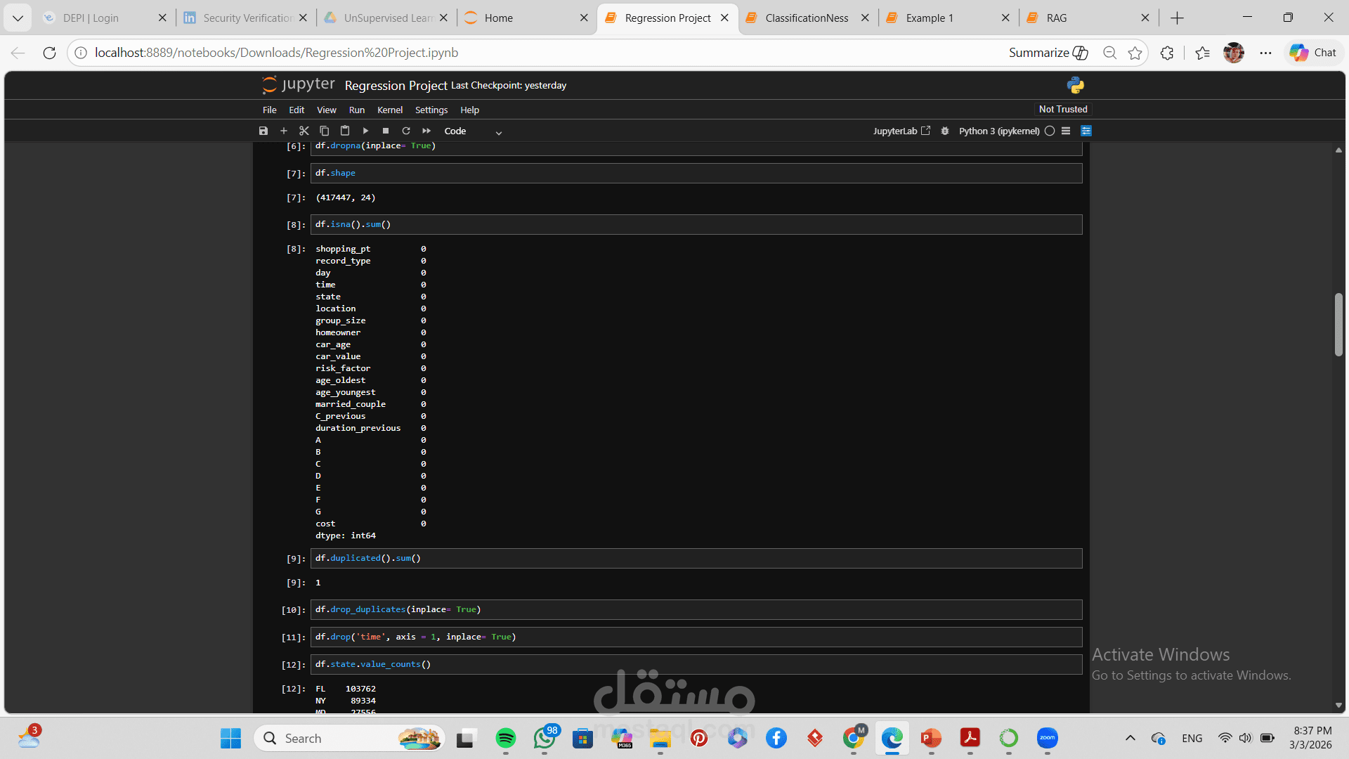 ✔️ تنظيف البيانات ومعالجة القيم المفقودة