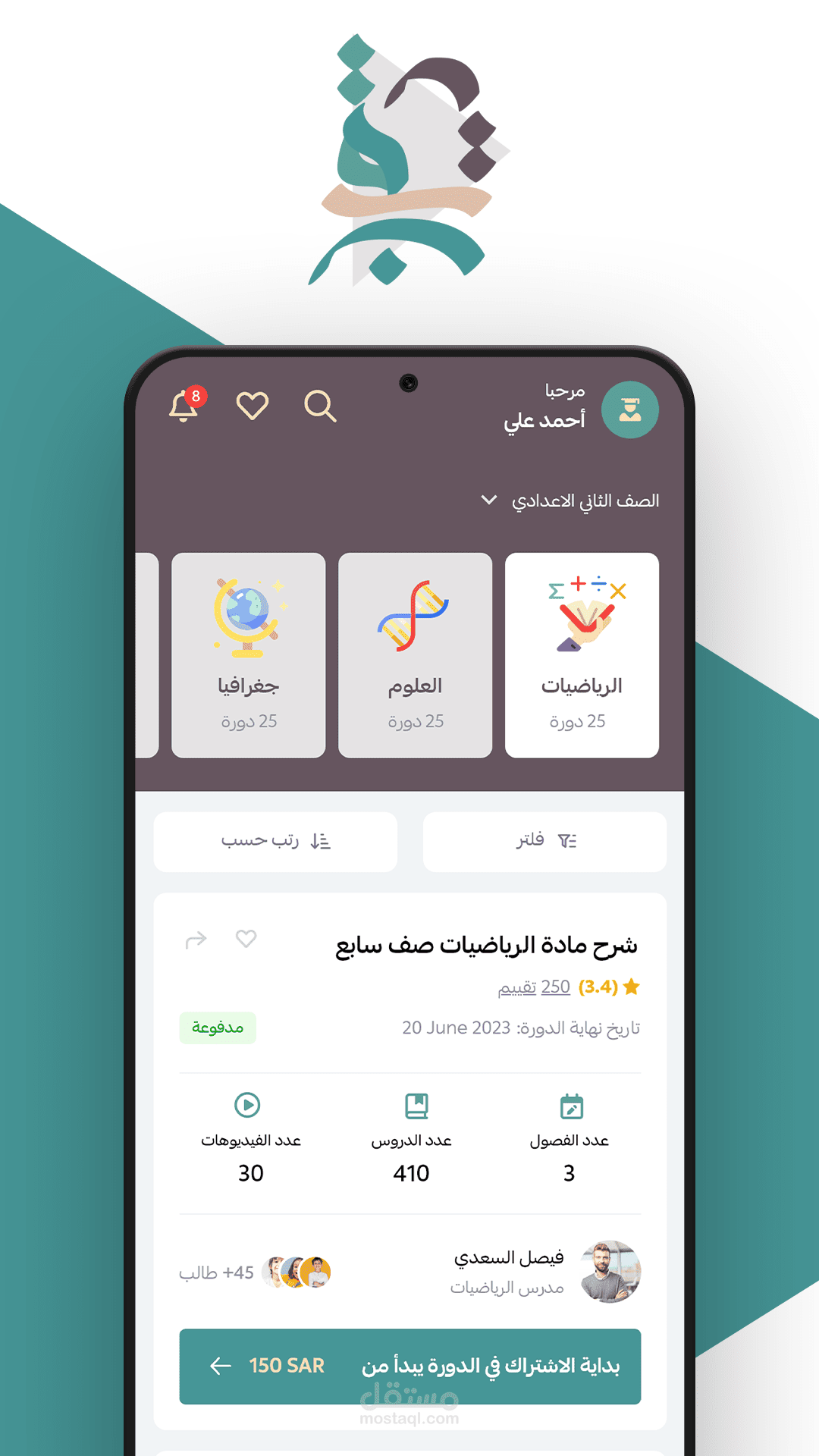 المواد العلمية داخل التطبيق مقسمة ومصنفة الى مجموعات.