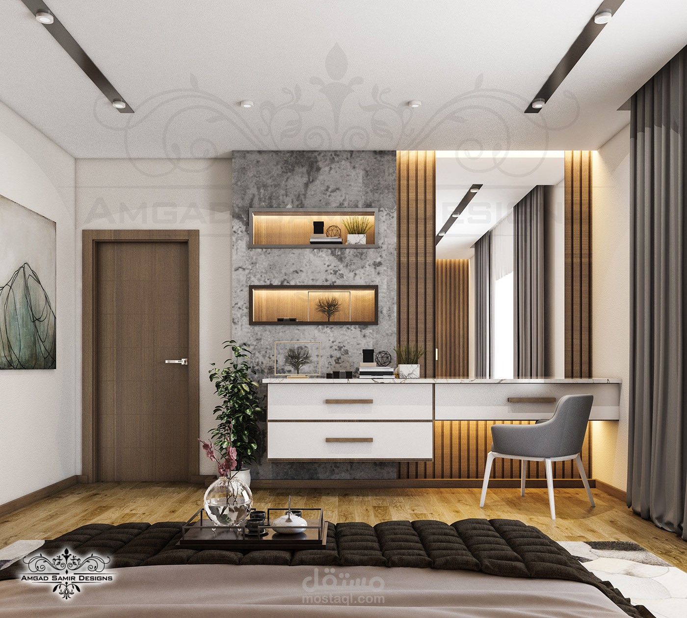 تصميم مودرن لغرفة نوم رئيسية من تصميمي لفيلا بالسعودية