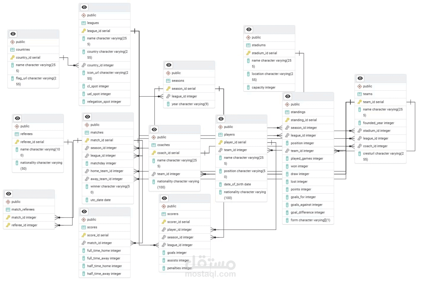 نظام قاعدة بيانات علائقية لإدارة دوري كرة قدم متكامل