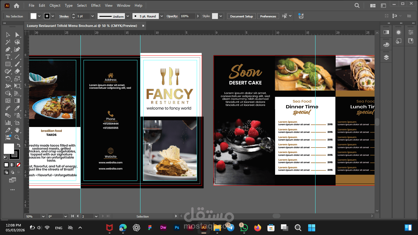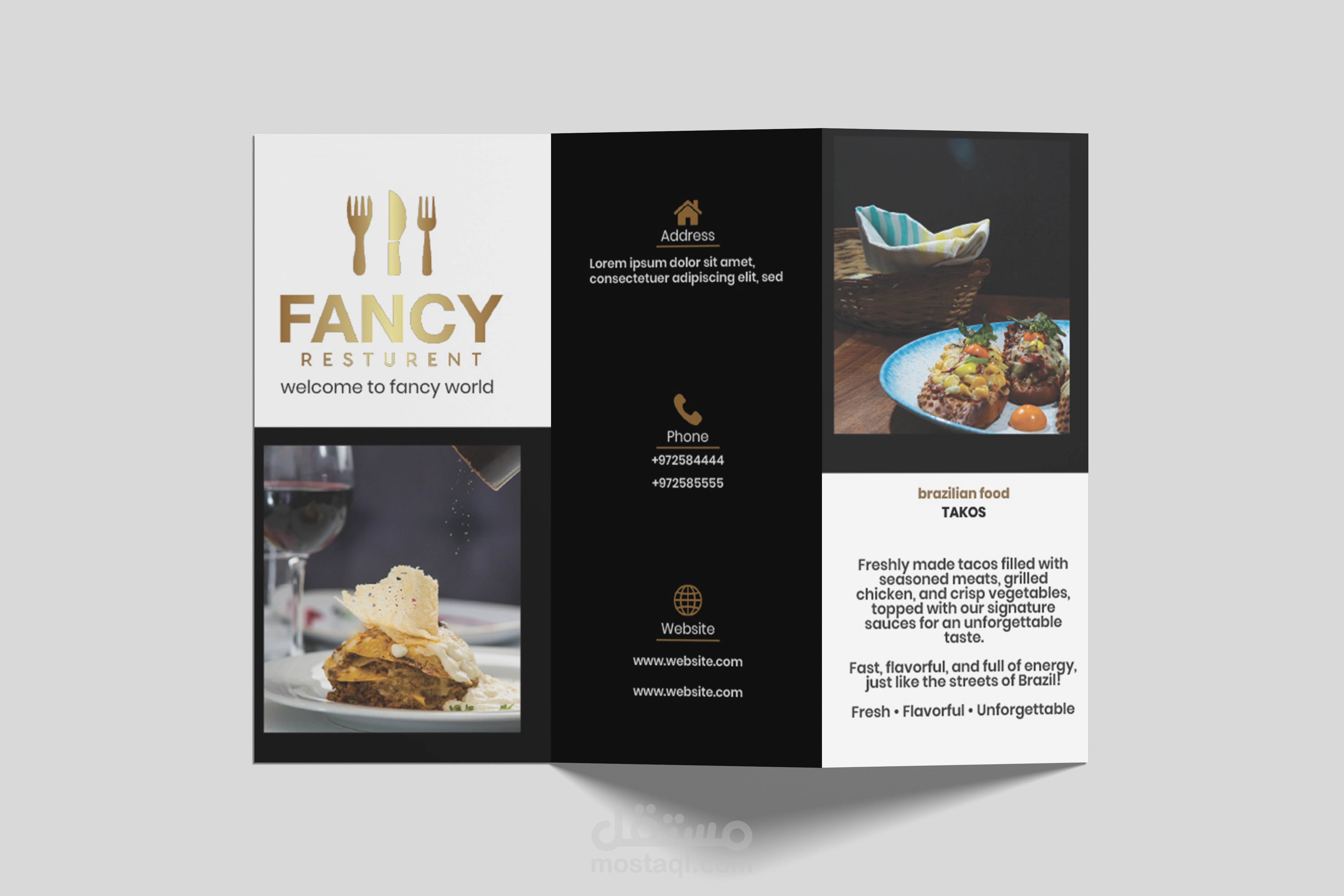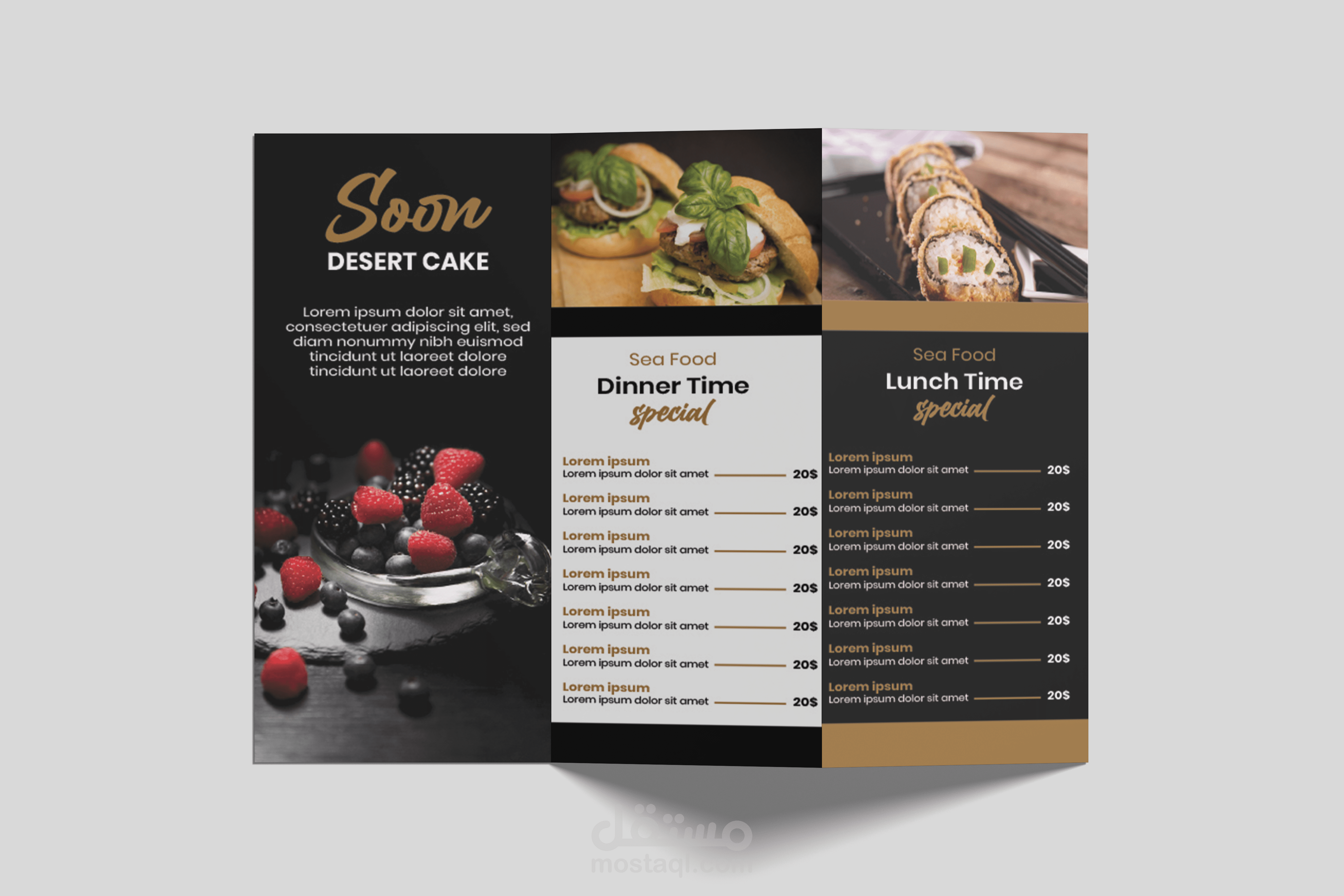 I designed this sophisticated trifold brochure for a high-end restaurant, focusing on a perfect blend of elegance and functionality. The primary goal was to create a visual experience that reflects the restaurant's premium identity while ensuring a seamless browsing experience for customers.