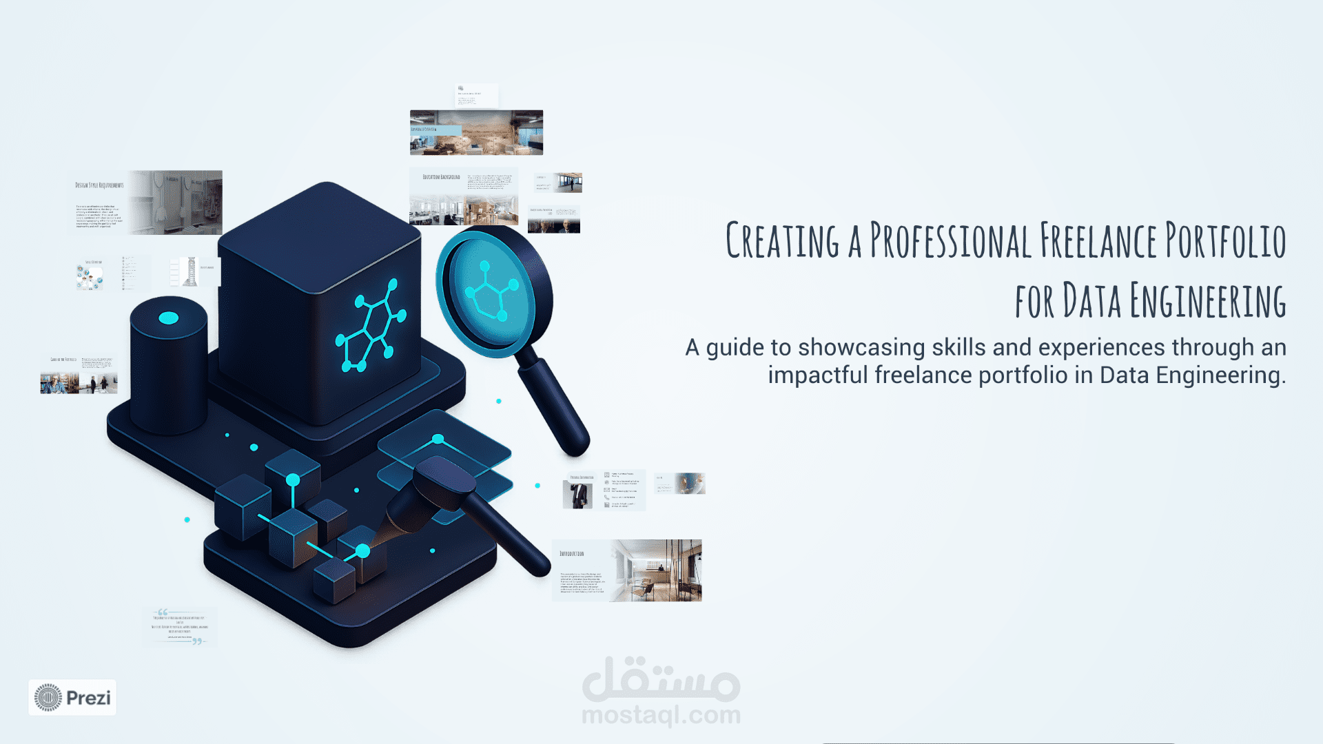 سأقوم بتصميم Presentation باستخدام Prezi بطريقة احترافية، حيث يكون العرض تفاعلي وسهل المتابعة للجمهور.