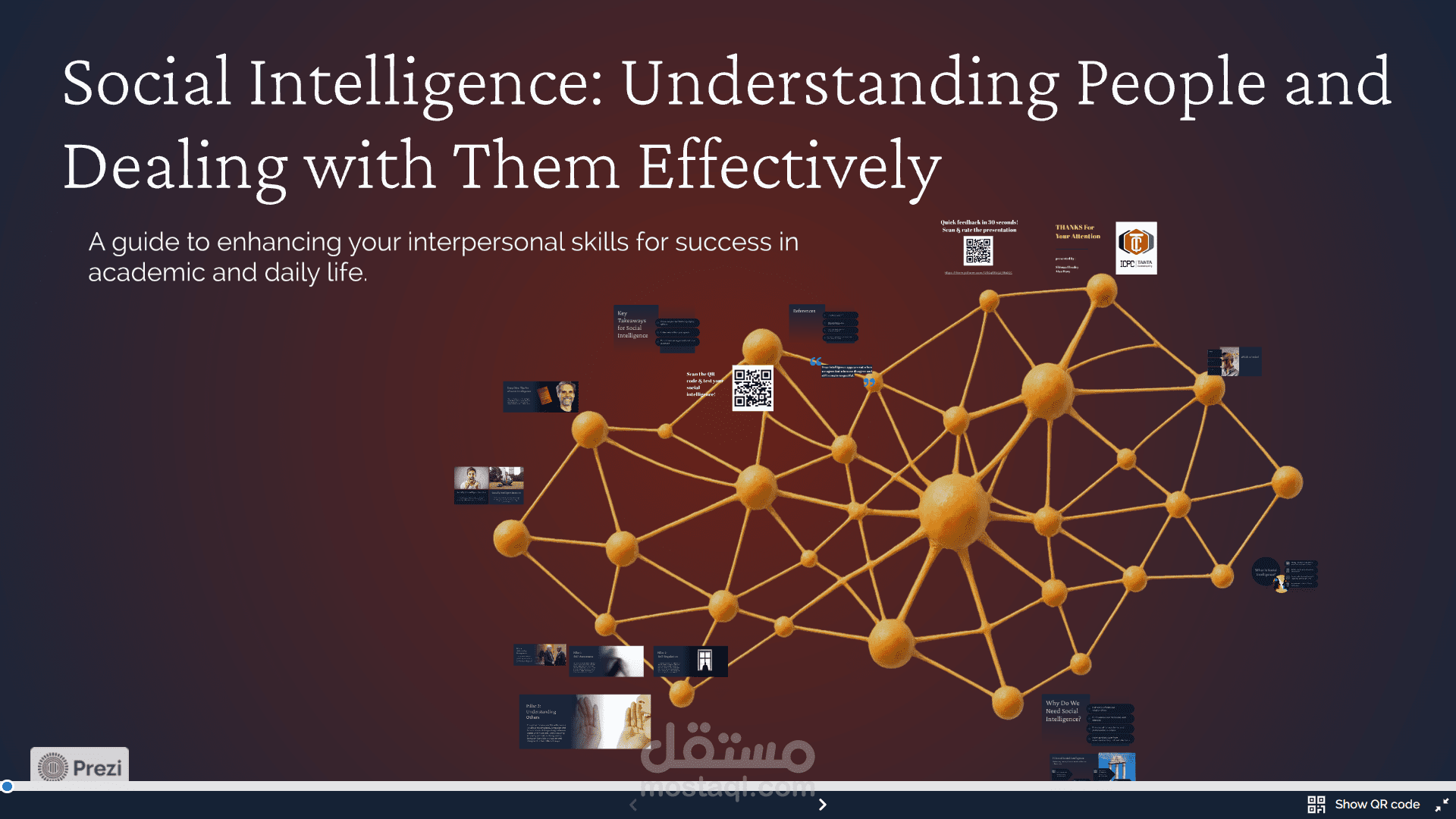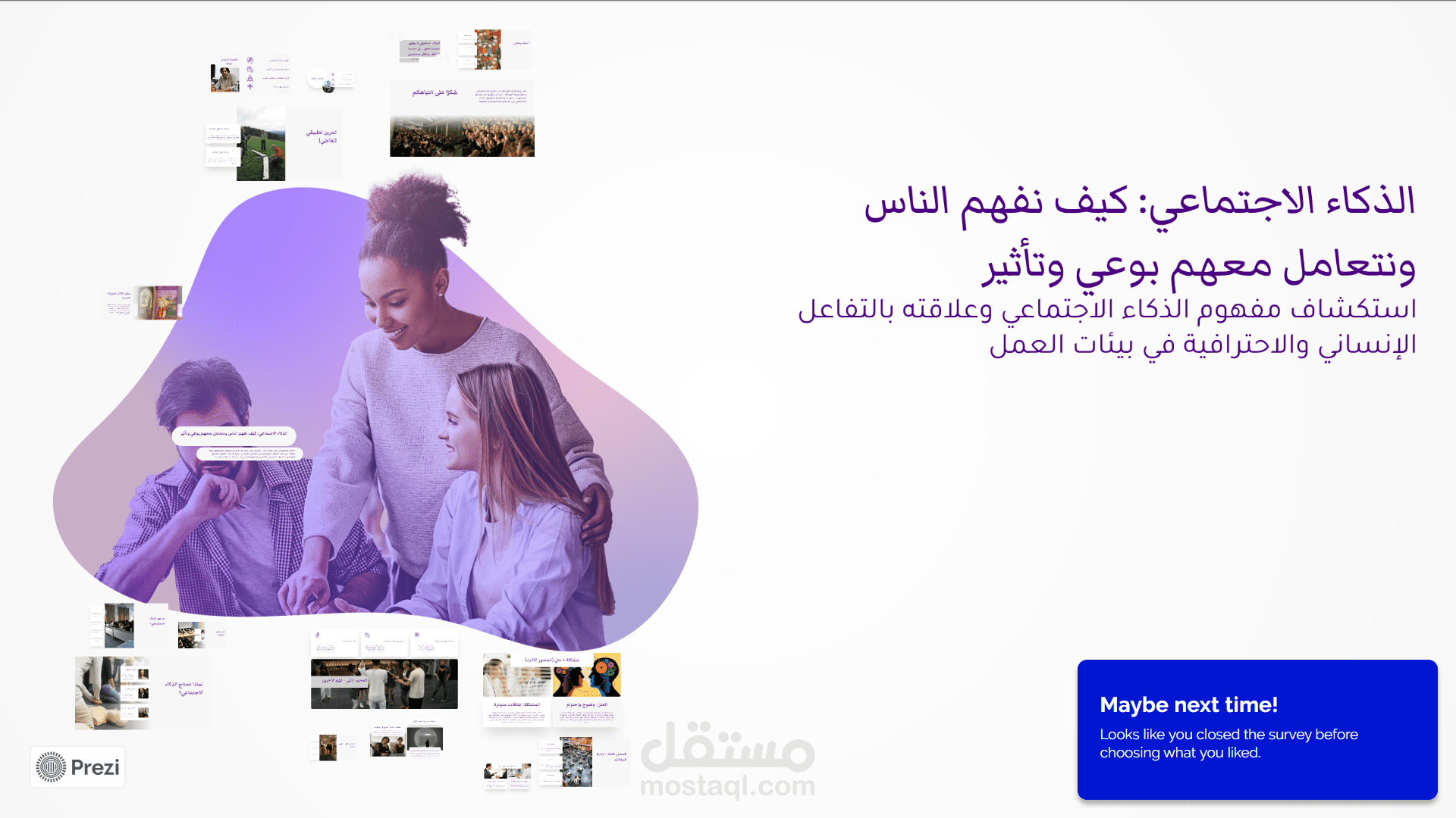 العرض يركز على التنقل بين الأفكار كقصة بصرية تفاعلية تجعل جمهورك متابع حتى النهاية، مع تصميم هادئ ومريح للعين.