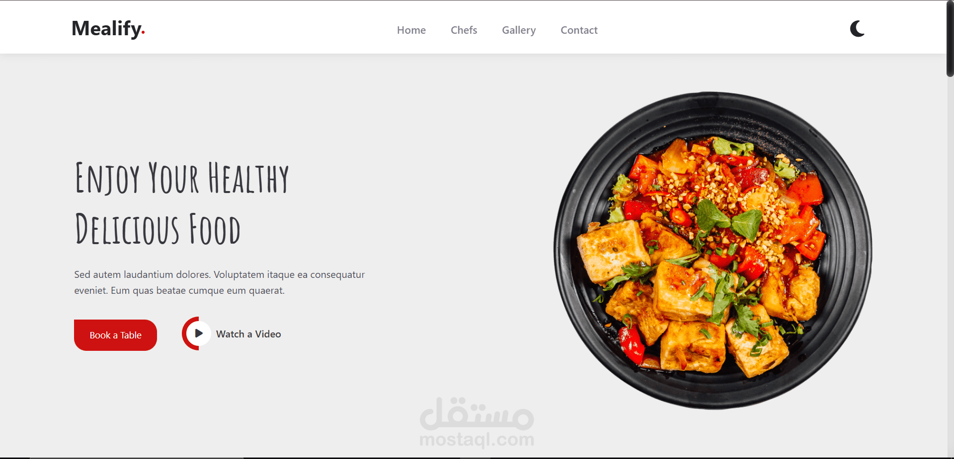 قمت بتصميم صفحة ويب لمطعم بهدف عرض الأطباق والخدمات بطريقة جذابة وسهلة التصفح. يركز التصميم على إبراز هوية المطعم من خلال تنسيق متناسق للألوان والصور مع تنظيم المحتوى بشكل واضح للزوار.