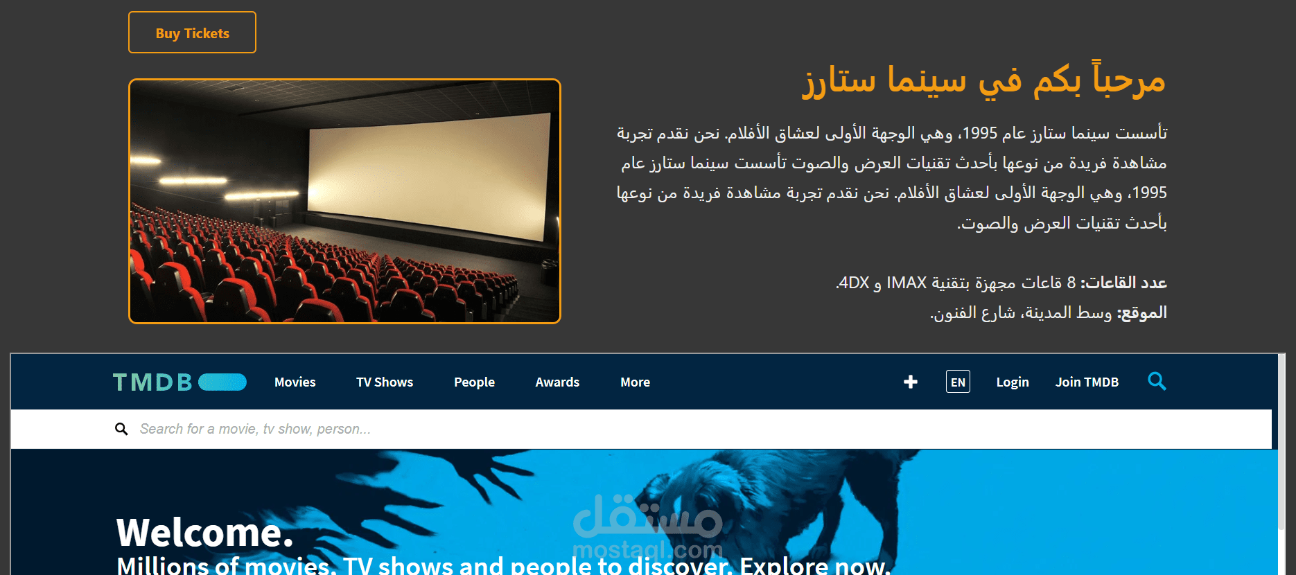 موقع سينما يسمى ب Cinema Stars لتسهيل حجز التذاكر بدلا من الانتظار امام غرف الحجز و معرفة تقييم الافلام و الابطال المشاركين فالاعمال التى تعرض فى السينما