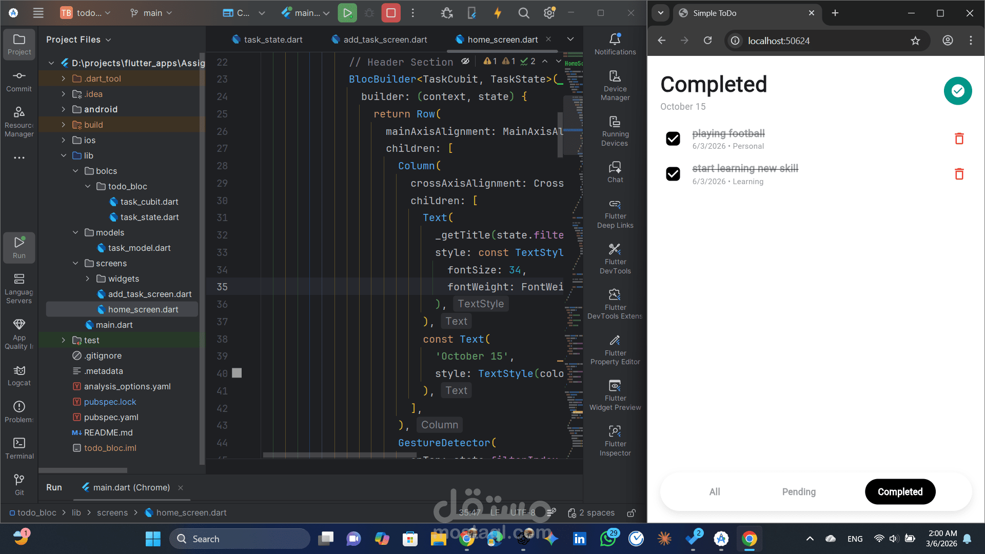 Cubit / Bloc لادارة الحالة (state management)