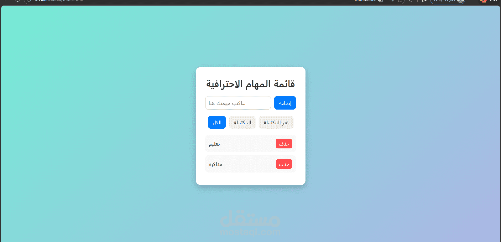 فلترة المهام: عرض كل المهام / المهام المكتملة / المهام غير المكتملة.