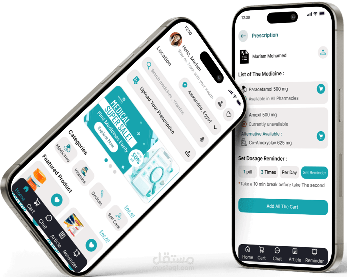 لا يقتصر دور التطبيق على طلب الأدوية فقط، بل يدعم المستخدمين من خلال تذكيرات بمواعيد تناول الدواء، ونظام بحث ذكي يقدم مقالات صحية ذات صلة، ونصائح يومية، واقتراحات لأجهزة طبية مناسبة. ومن خلال دمج خدمات الصيدلة مع إدارة الصحة، يتيح التطبيق للمستخدمين اتخاذ قرارات صحية واعية، وتنظيم خطط العلاج بكفاءة، والاستمتاع بتجربة استخدام سلسة وسهلة.