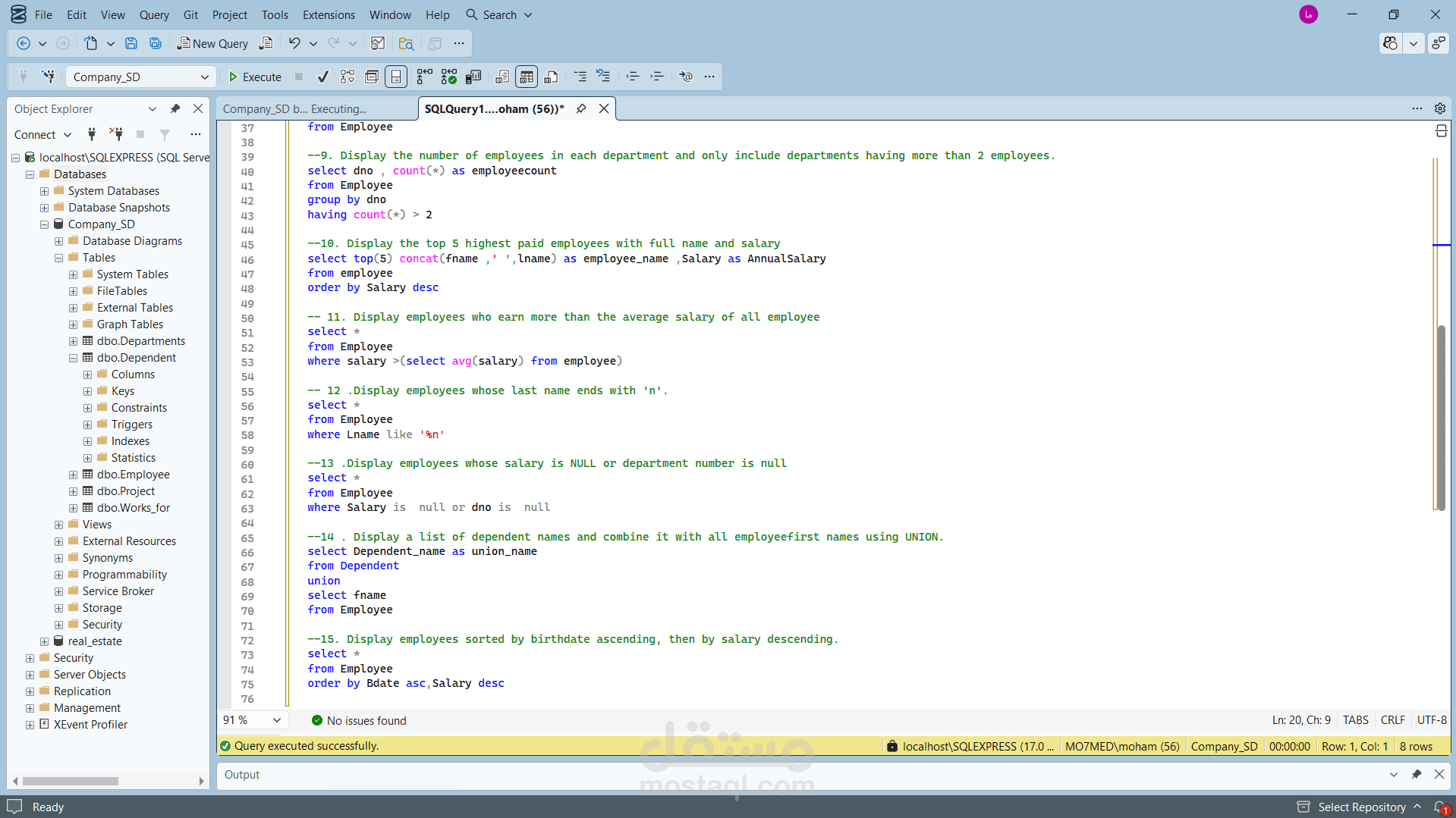 Normalization (1NF, 2NF, 3NF): التأكد من خلو التصميم من تكرار البيانات (Redundancy) لضمان أداء استعلامات أسرع.