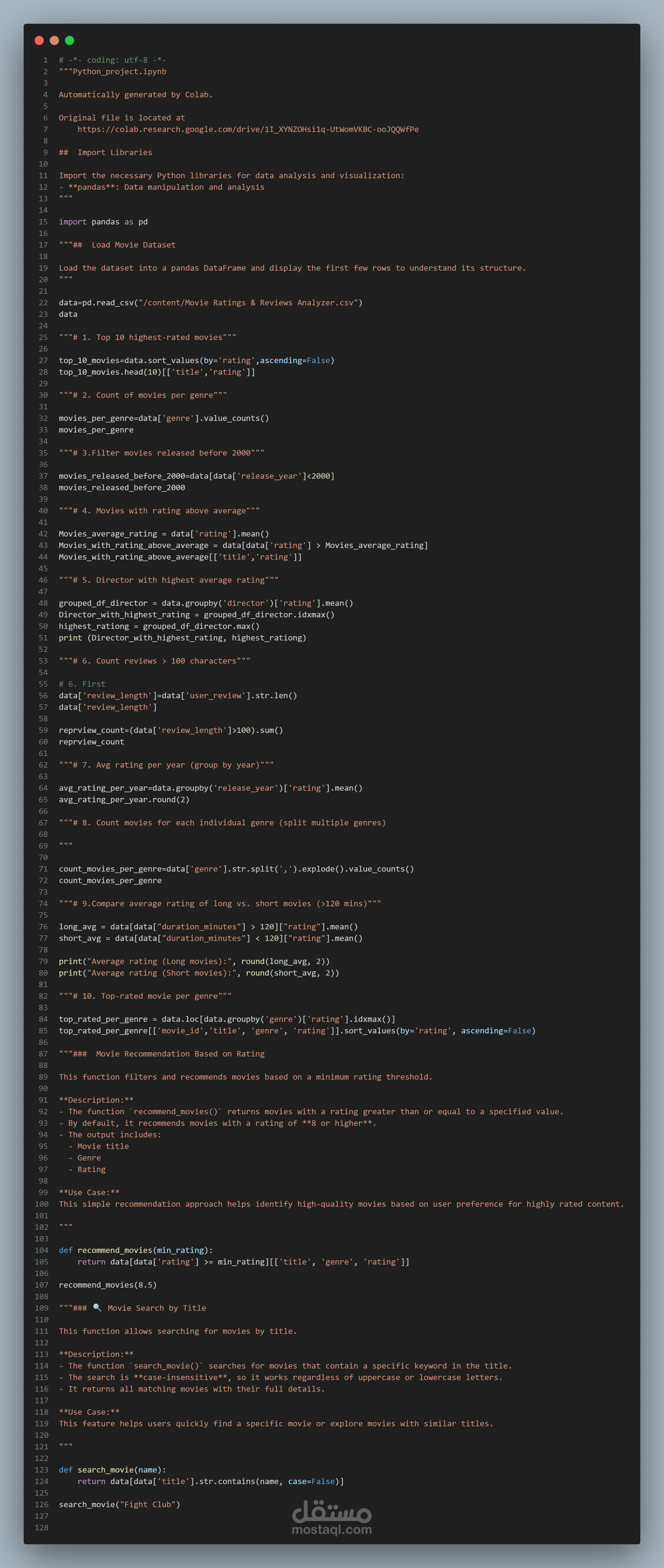 Movie Ratings & Reviews Analyzer باستخدام Python و Pandas