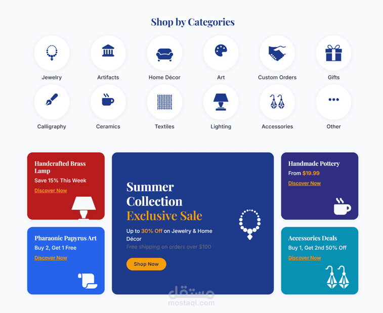 Delivered 5 dynamic sections (Home, Products, About, etc.) with 8