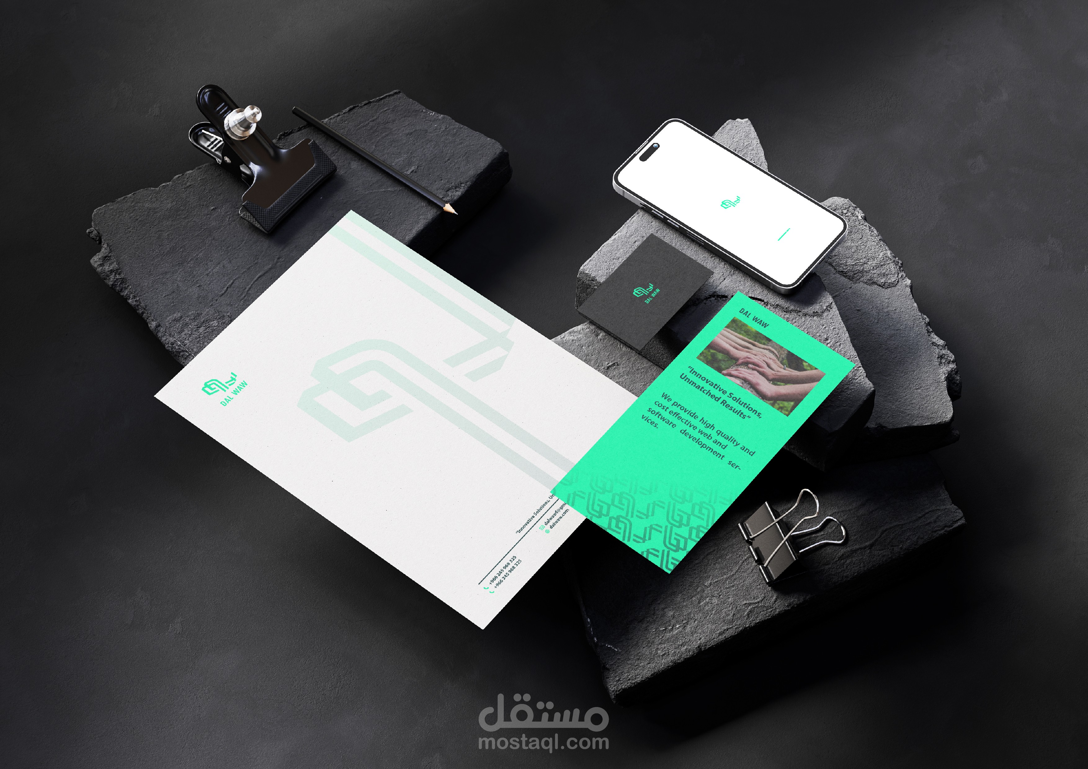 قمت بتصميم الهوية البصرية الكاملة لشركة **DAL WAW** وهي شركة متخصصة في تقديم حلول البرمجيات وتطوير المواقع والتطبيقات. يهدف المشروع إلى بناء هوية حديثة تعكس روح الابتكار والتكنولوجيا التي تعتمد عليها الشركة في تقديم خدماتها.