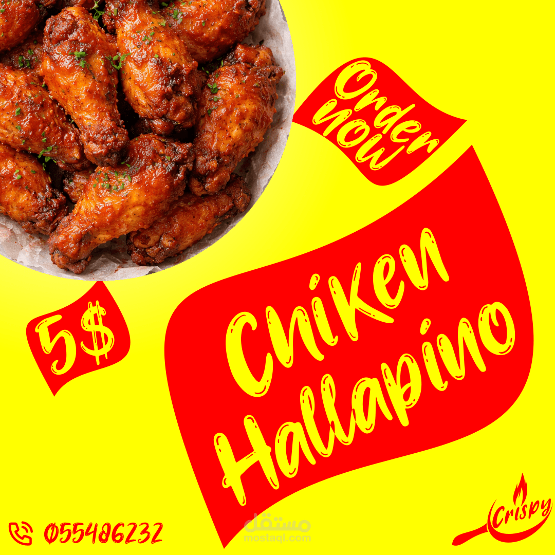مطعم crispy هو مطعم يحرص دائما على التنوع في أطباقه و تحربة أشياء جديدة هذا التصميم و مجموعة بسيطة لبوسترات إعلاني مع إقتراح شعار للمطعم