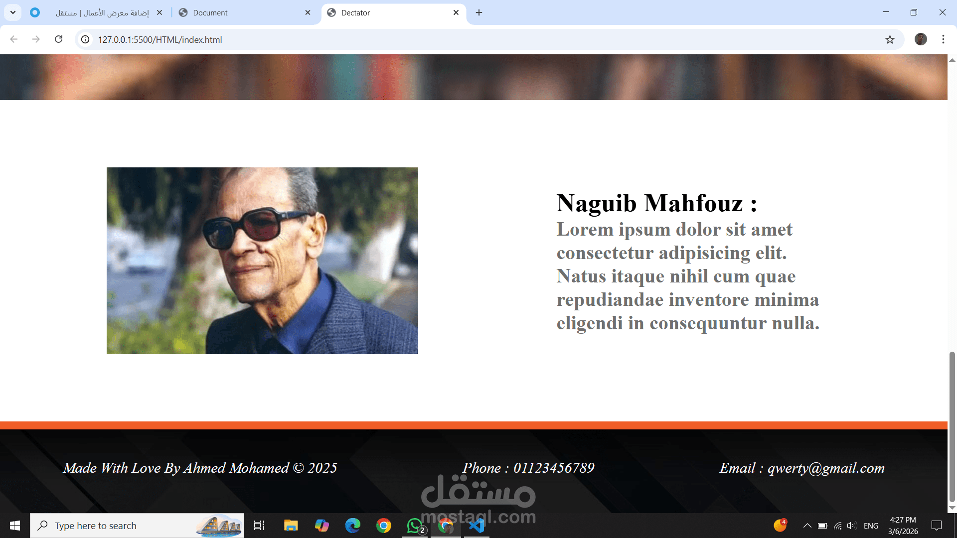 A front-end practice project built using HTML and CSS to improve my skills in structuring and styling web pages. The website focuses on creating a clean design and a responsive layout that adapts to different screen sizes.