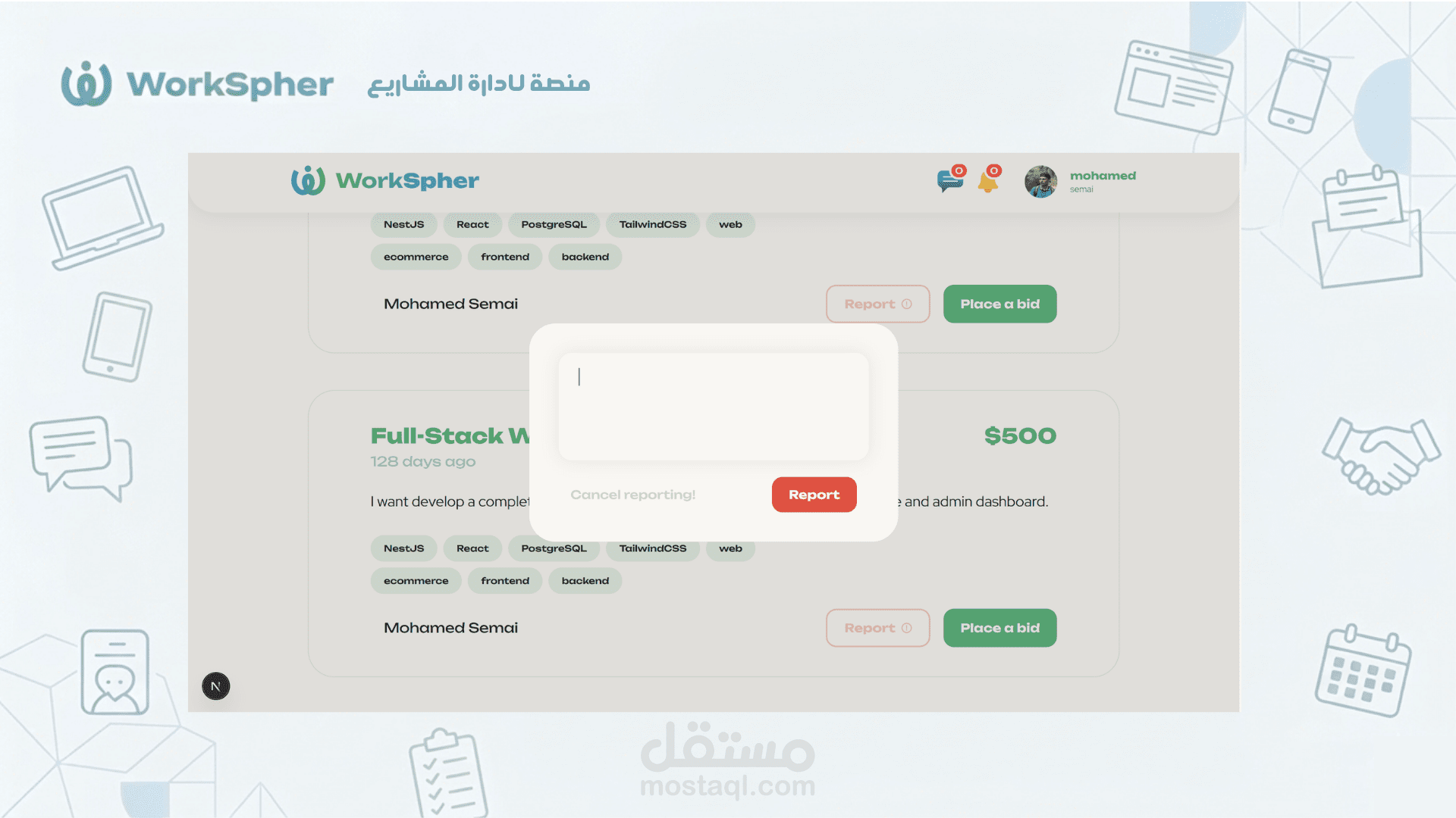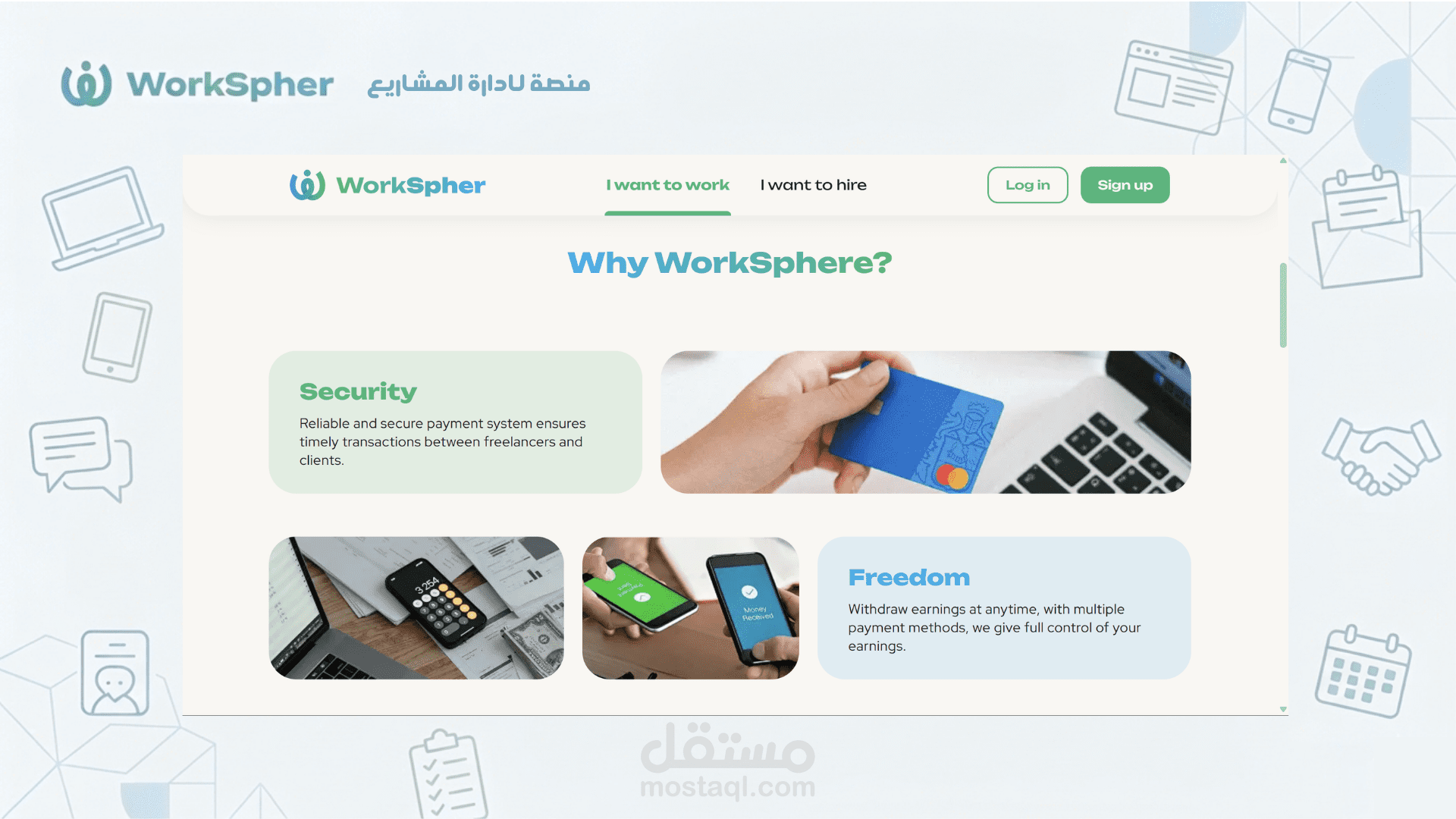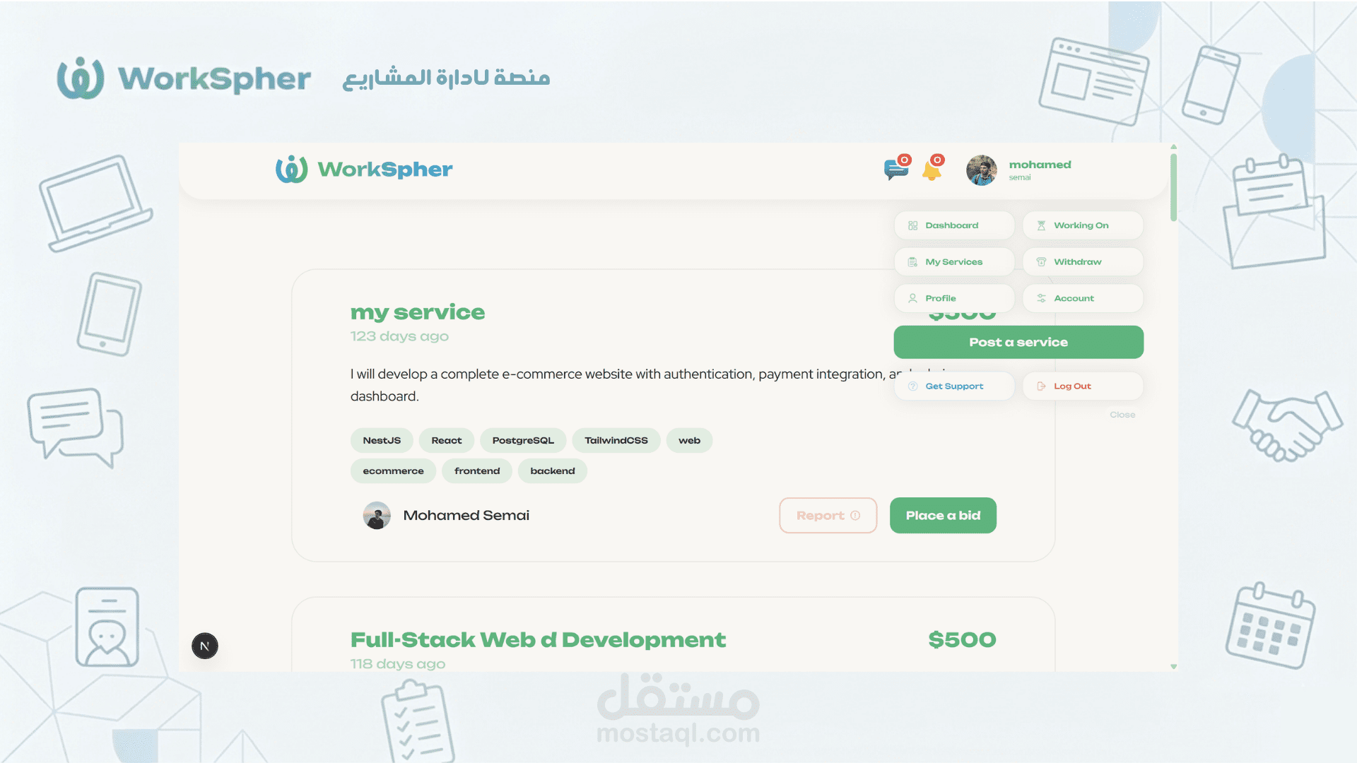 إدارة الأدوار (Role-Based Access): توفير لوحات تحكم منفصلة (Dashboards) للعملاء وللمستقلين بصلاحيات مخصصة.