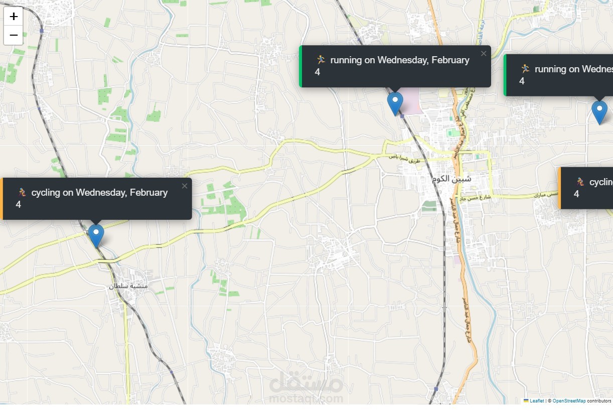 يعتمد التطبيق على خريطة تفاعلية لعرض أماكن التمارين التي يقوم المستخدم بتسجيلها، مما يساعد على متابعة النشاط الرياضي وتنظيمه بطريقة سهلة وواضحة.