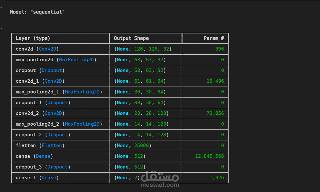 قمت بتطوير نموذج Deep Learning لتصنيف الصور إلى قطط أو كلاب باستخدام Convolutional Neural Networks (CNN). شمل المشروع تحميل البيانات من Kaggle، ومعالجة الصور وتجهيزها للتدريب، ثم بناء وتدريب نموذج باستخدام TensorFlow وKeras للتعرف على الأنماط البصرية داخل الصور. يهدف المشروع إلى تطبيق أساسيات Computer Vision ومعالجة الصور وبناء نموذج قادر على التنبؤ بدقة بفئة الصورة. هذا المشروع يمثل أول تجربة لي في مجال Image Processing وDeep Learning وهو بداية رحلتي في تطوير تطبيقات الذكاء الاصطناعي والرؤية الحاسوبية.