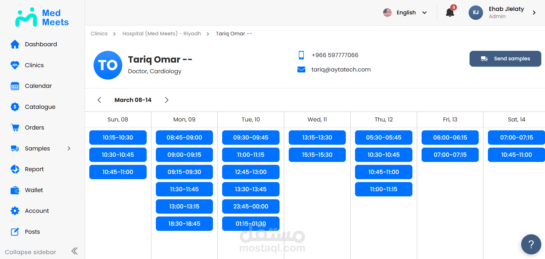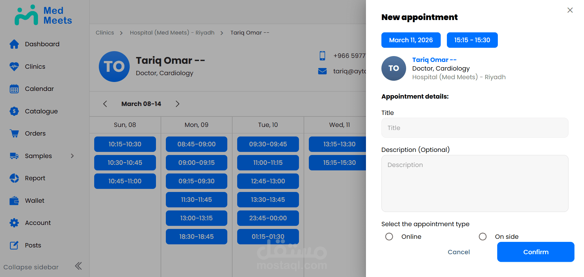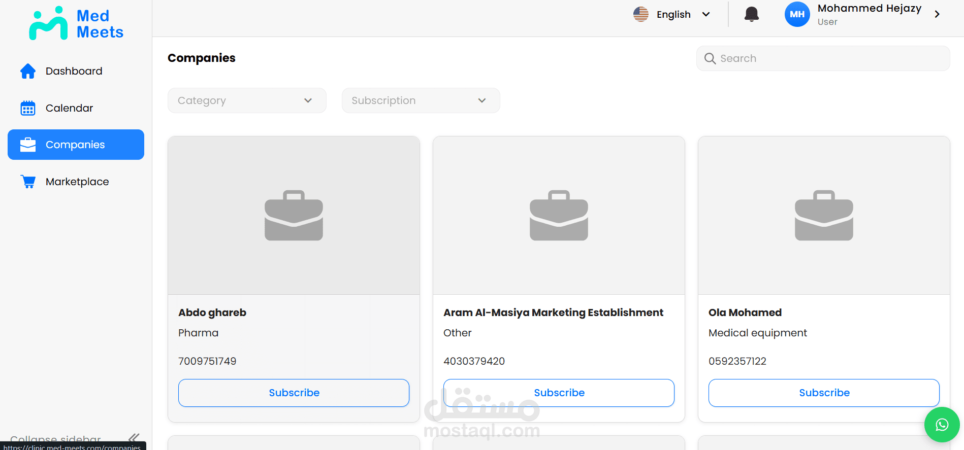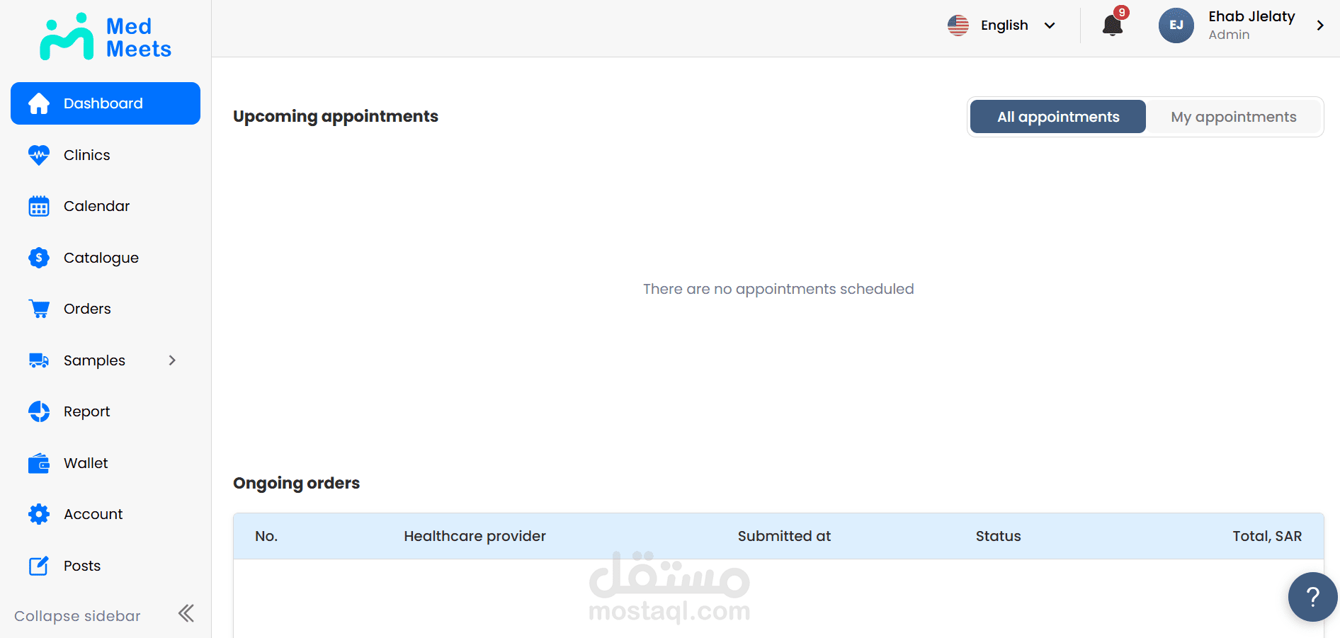 مشروع Med Meets، وهو منصة رقمية تهدف إلى تنظيم وإدارة اللقاءات الطبية وربط الأطباء والمتخصصين والجهات الصحية ضمن تجربة استخدام واضحة وسهلة. يتيح المشروع إدارة المستخدمين، جدولة اللقاءات، متابعة المشاركين، وتنظيم المعلومات والبيانات المرتبطة بكل اجتماع أو فعالية طبية من خلال لوحة تحكم عملية وواجهة استخدام متجاوبة. ركزت في تنفيذ المشروع على سهولة الوصول للمعلومات، تحسين تجربة المستخدم، وبناء نظام موثوق يدعم سير العمل بشكل منظم واحترافي.