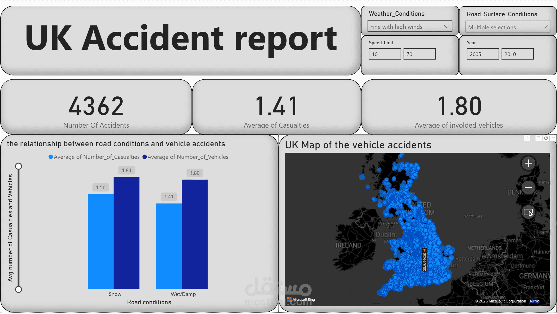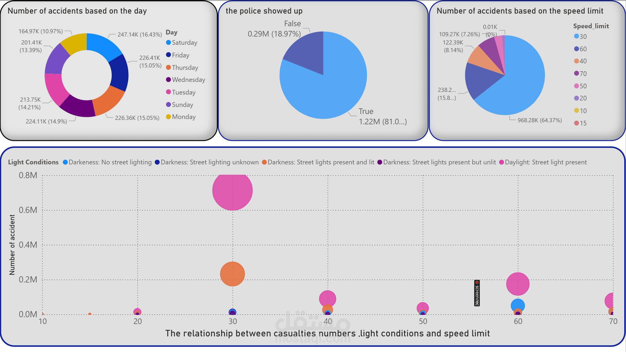 The objective of this project was to analyze historical road accident data in the UK to identify high-risk areas, seasonal trends, and primary causes of accidents. This dashboard provides traffic authorities and policymakers with actionable insights to improve road safety