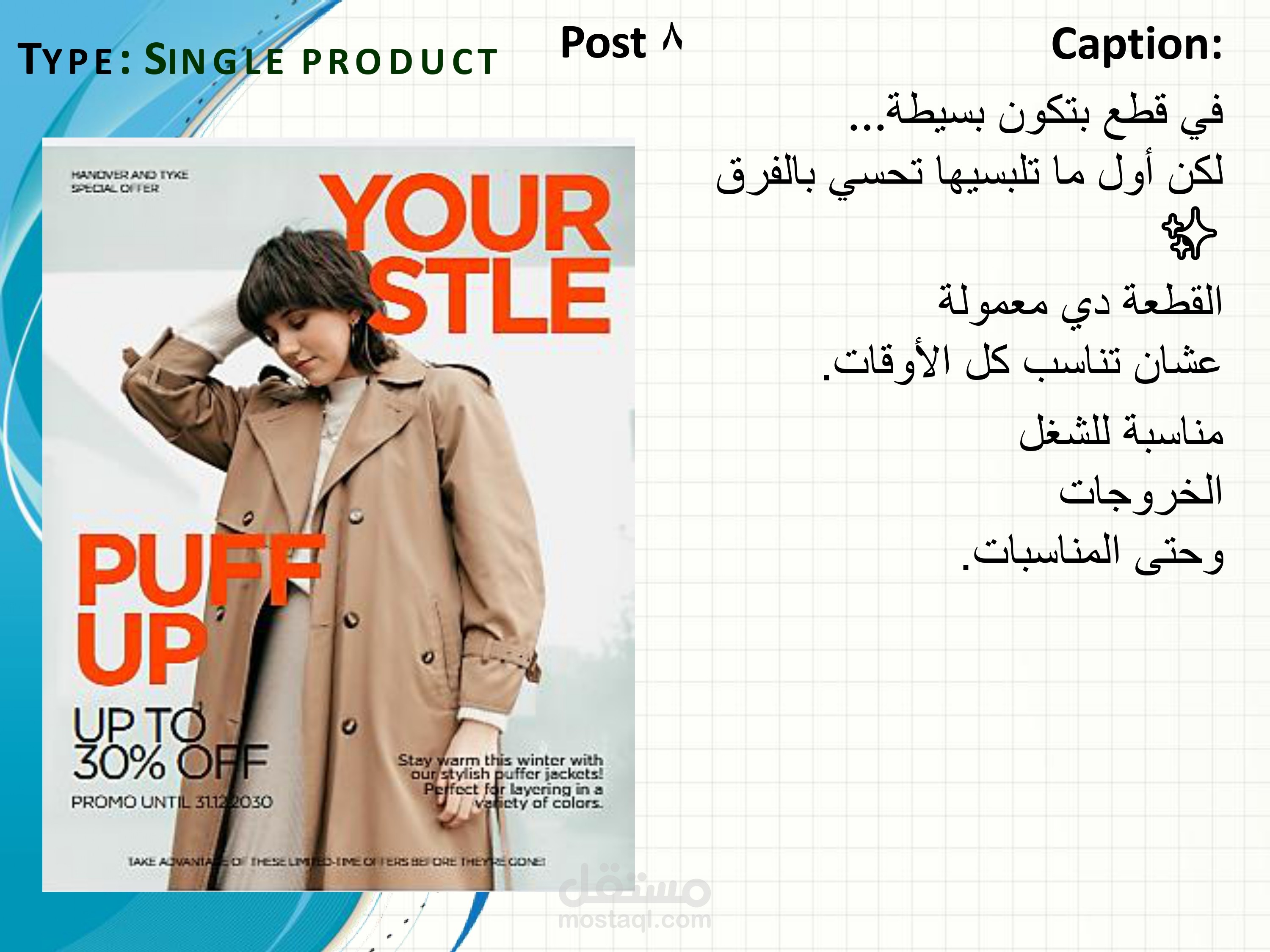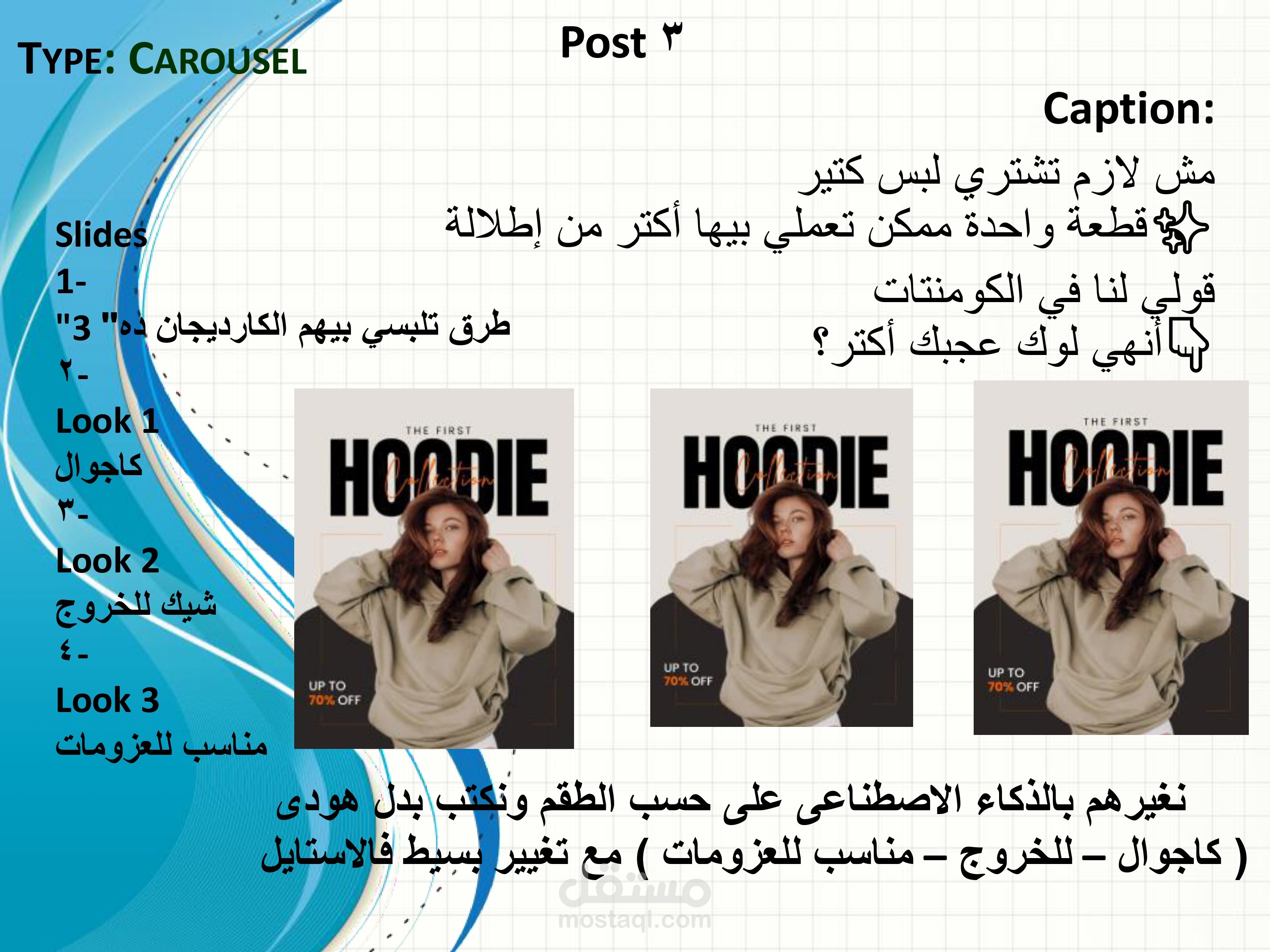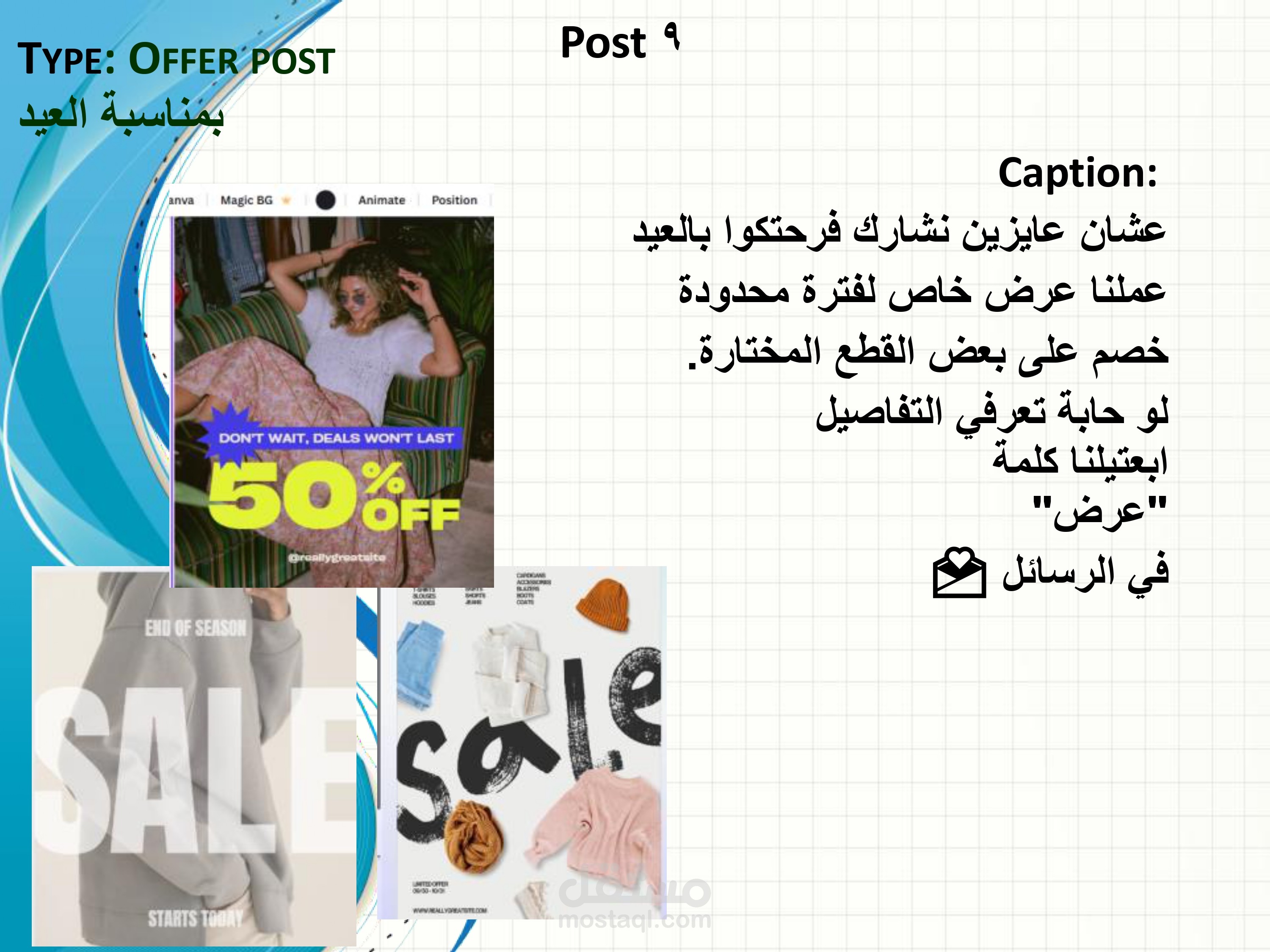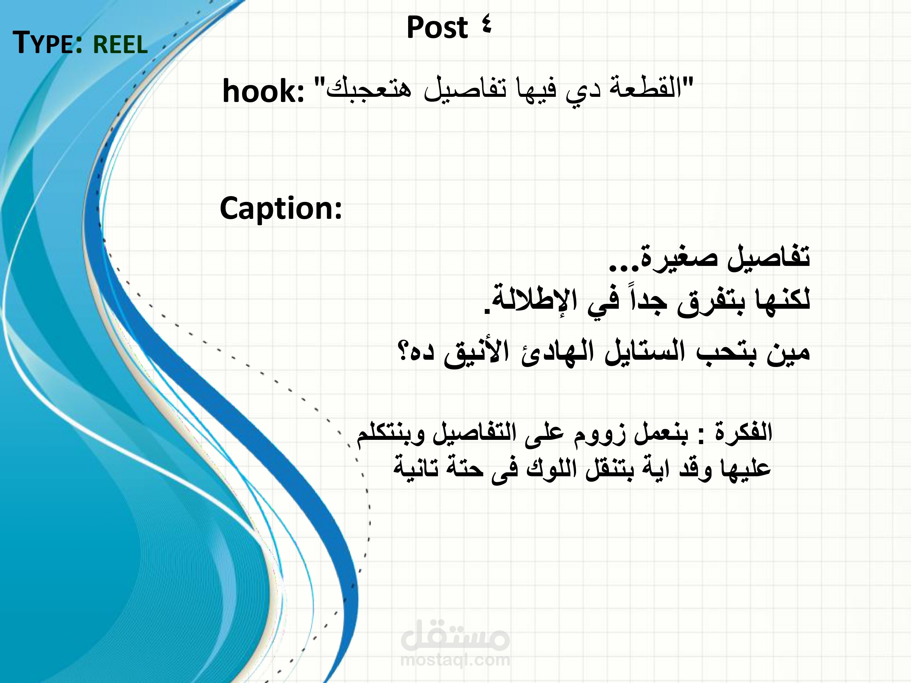 تضمن المشروع تخطيط أنواع المحتوى المختلفة مثل Reels – Carousel – Single Posts – Offer Posts مع كتابة Hooks جذابة وأفكار محتوى تسويقية وكابشن منظم لكل منشور.