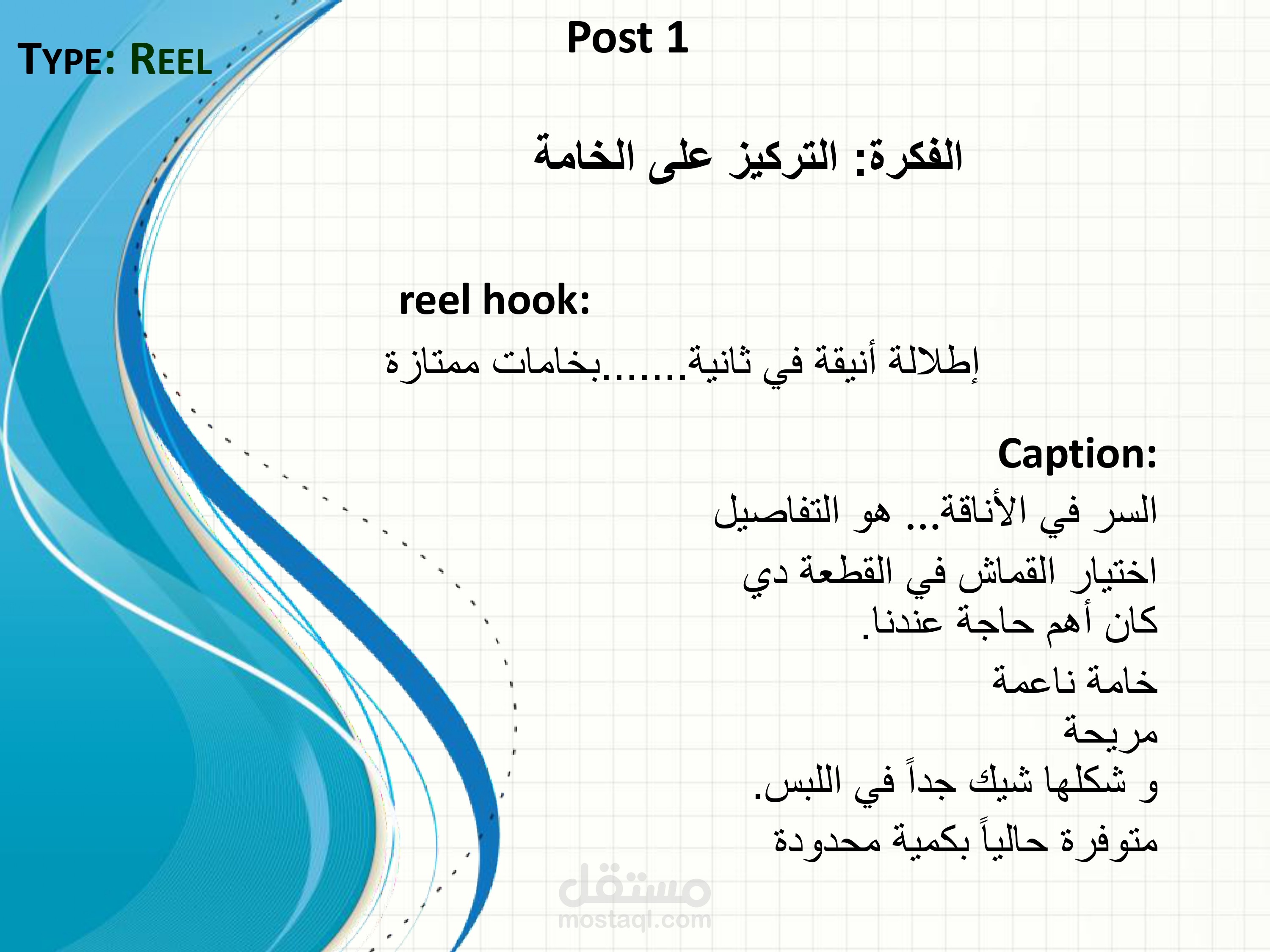 كما تم تصميم هيكل واضح للمحتوى يوازن بين محتوى التفاعل، عرض المنتجات، والمحتوى التسويقي لضمان جذب الجمهور وتحفيزه على التفاعل والشراء، مع مراعاة هوية العلامة التجارية وطبيعة الجمهور المستهدف.