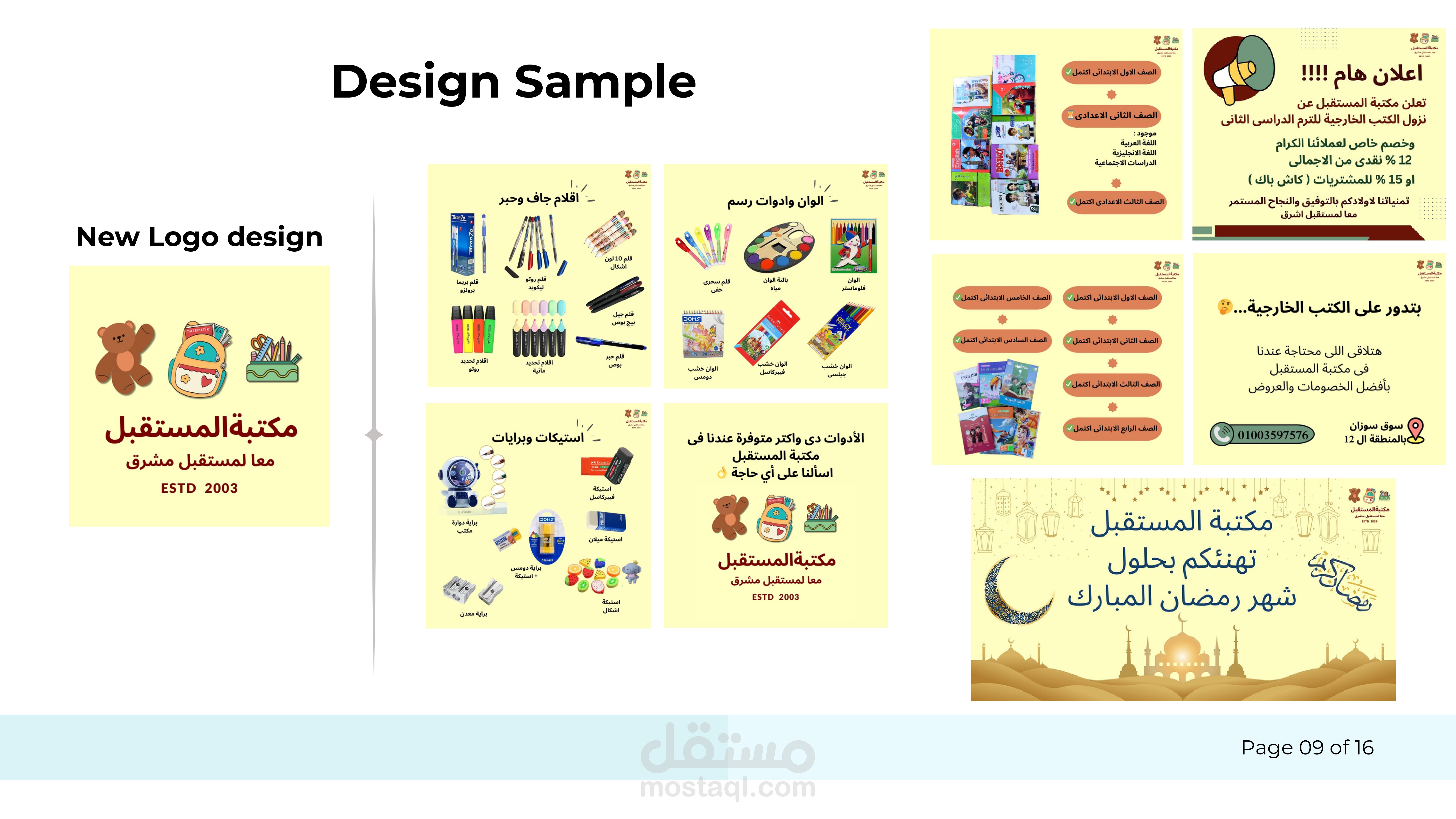 تضمن العمل إعداد محتوى بصري منظم وتصميم بوستات لمنتجات مختلفة مثل الأدوات المدرسية والملابس، مع كتابة كابشن تسويقي مناسب للجمهور المستهدف يبرز مميزات المنتجات ويشجع على التفاعل أو الاستفسار.