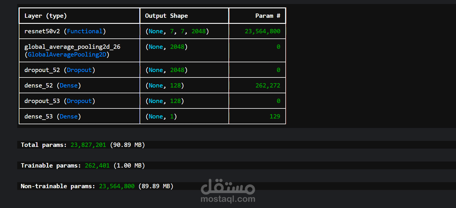 إضافة طبقات مخصصة (Custom Layers) لتحسين نتائج التصنيف الثنائي (Binary Classification).