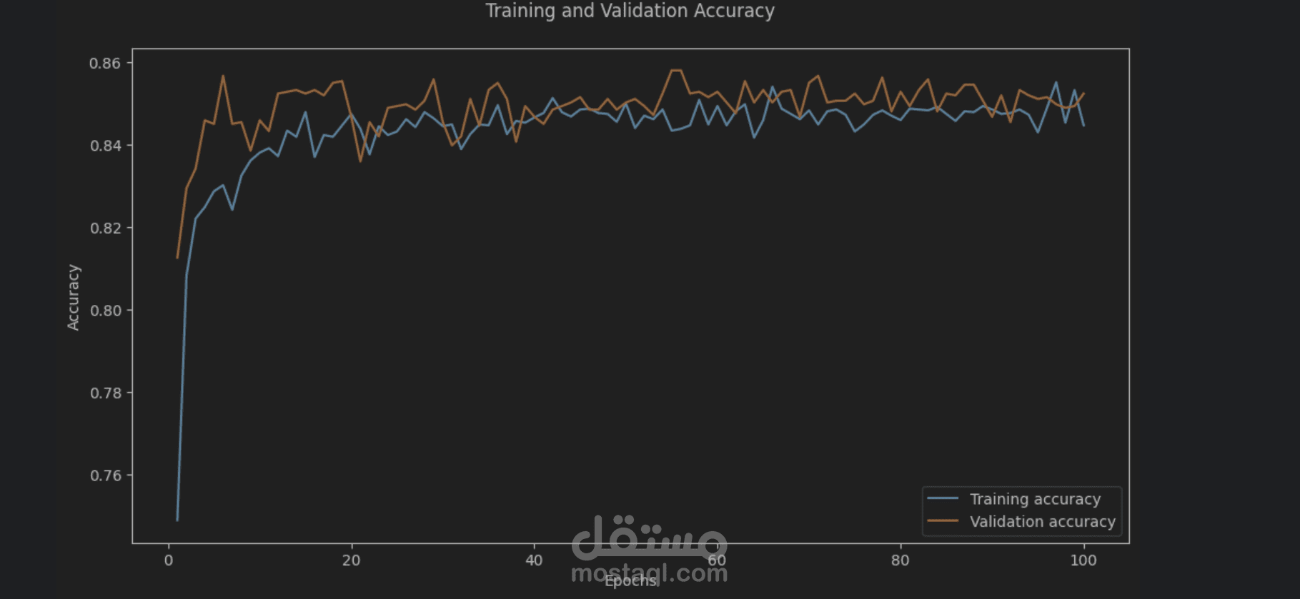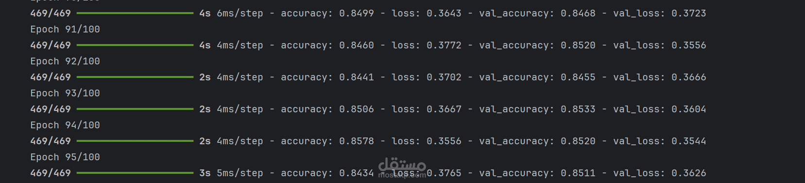 استخدام مكتبات TensorFlow و Keras للتدريب.