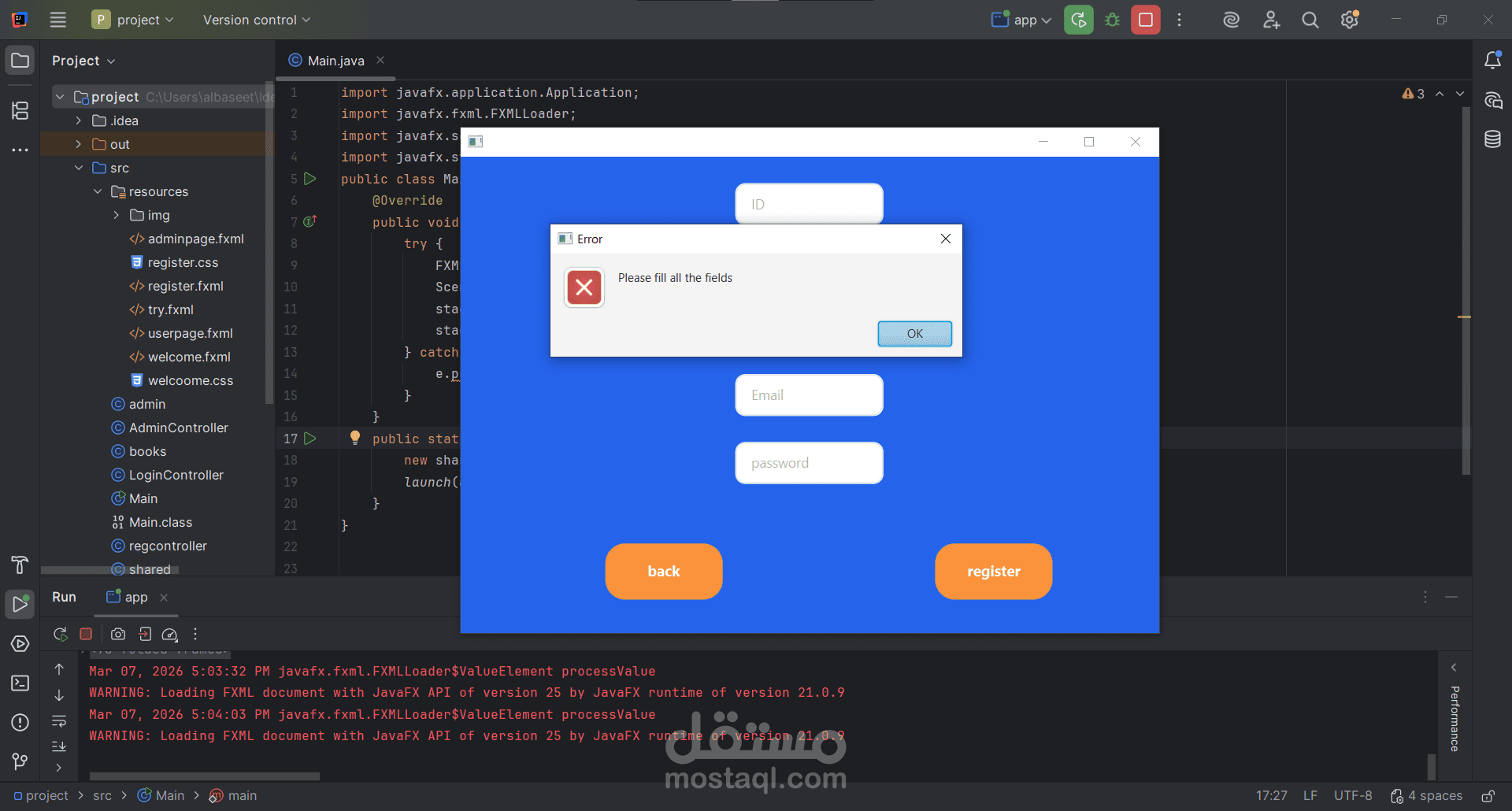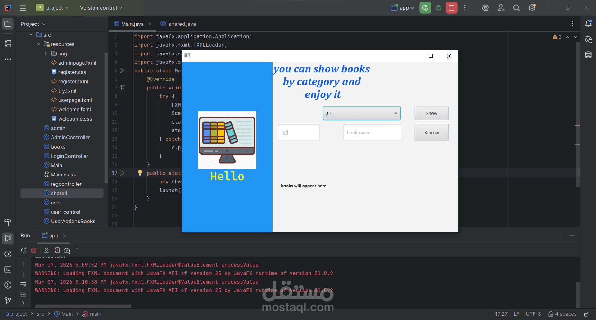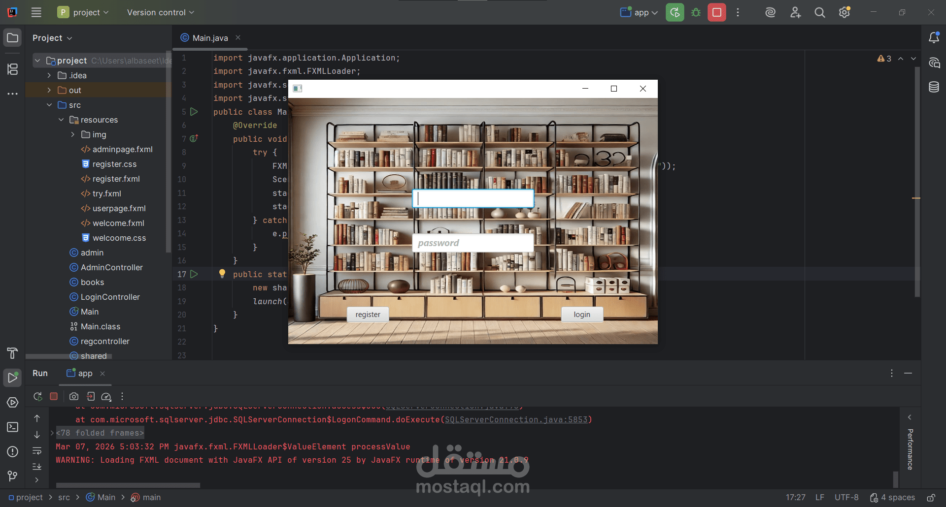 نظام إدارة المكتبة الذكي (Library Management System) هو مشروع يهدف إلى تسهيل العمليات الإدارية داخل المكتبات وتحويلها إلى نظام رقمي فعال. تم تصميم النظام باستخدام لغة Java مع واجهات رسومية متطورة تعتمد على تقنية JavaFX، مما يوفر تجربة مستخدم سلسة وسهلة التعامل.