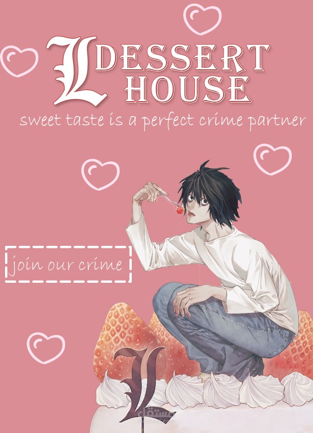 بوستر دعاية لمنتج اخترت أنه يبقى حلويات مقتبس عن شخصيه L فى انمي Death note اللي كان بيحب ياكل حلويات علطول عشان يفكر كويس