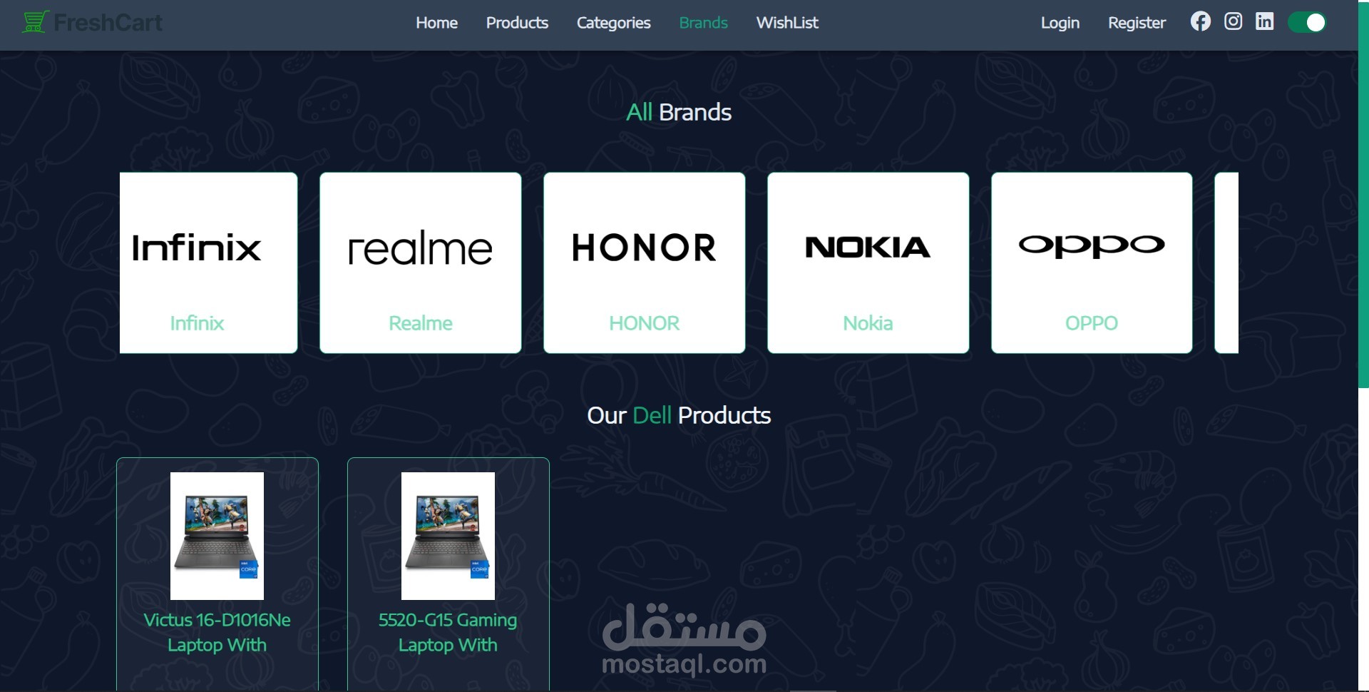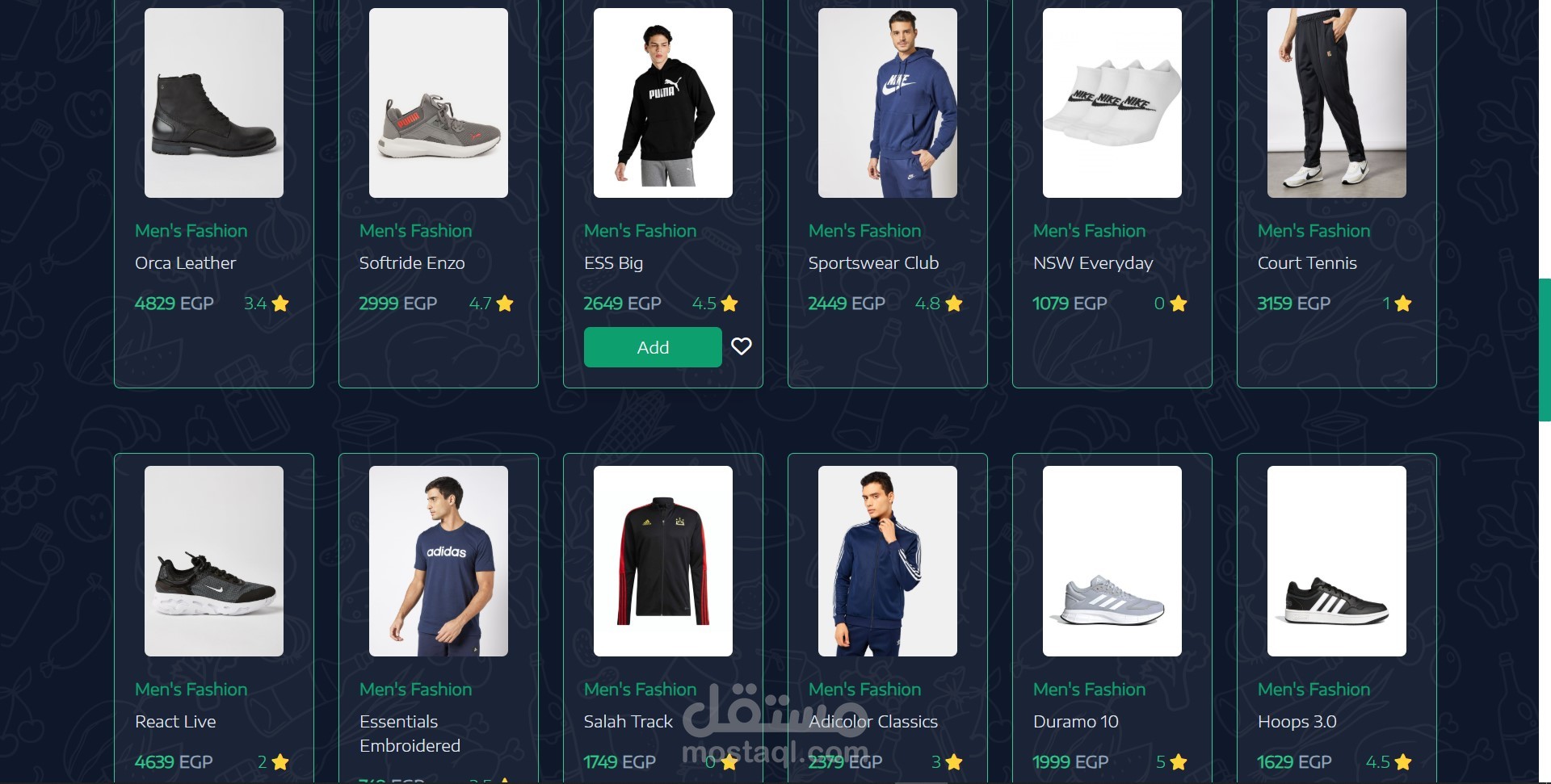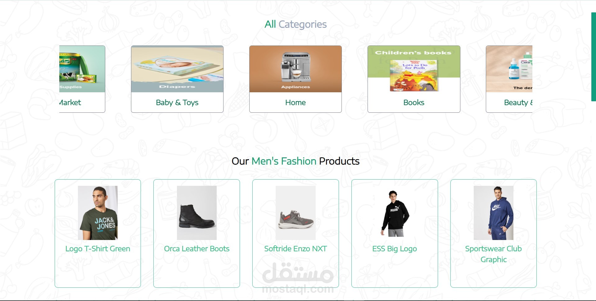 يتيح الموقع عرض المنتجات في أقسام مختلفة مع إمكانية مشاهدة تفاصيل كل منتج مثل السعر والوصف والصورة، بالإضافة إلى إمكانية إضافة المنتجات إلى سلة المشتريات وإدارة الطلبات.