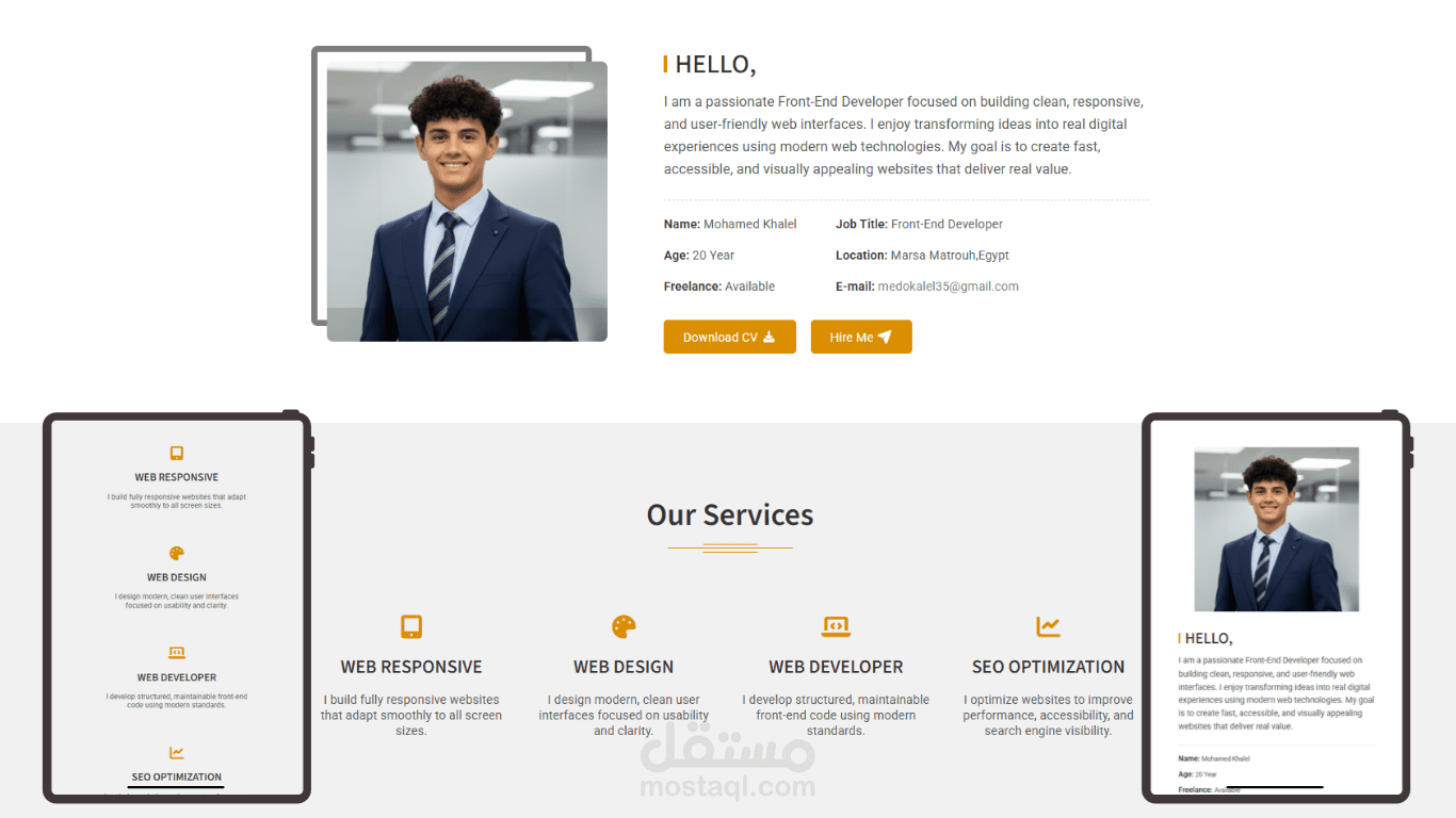 هذا الموقع هو Portfolio شخصي قمت بتطويره لعرض مهاراتي ومشاريعي في مجال تطوير الويب. تم تنفيذ المشروع كجزء من التدريب العملي خلال مشاركتي في مبادرة Egypt's Digital Pioneers Initiative.