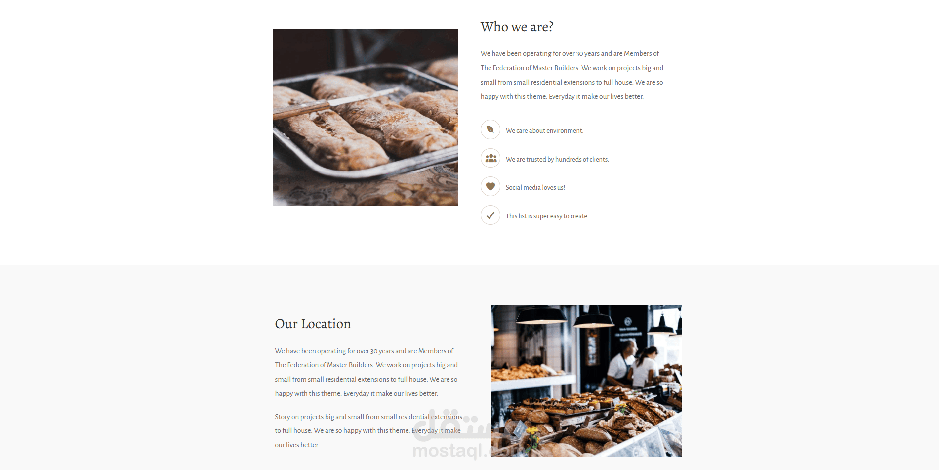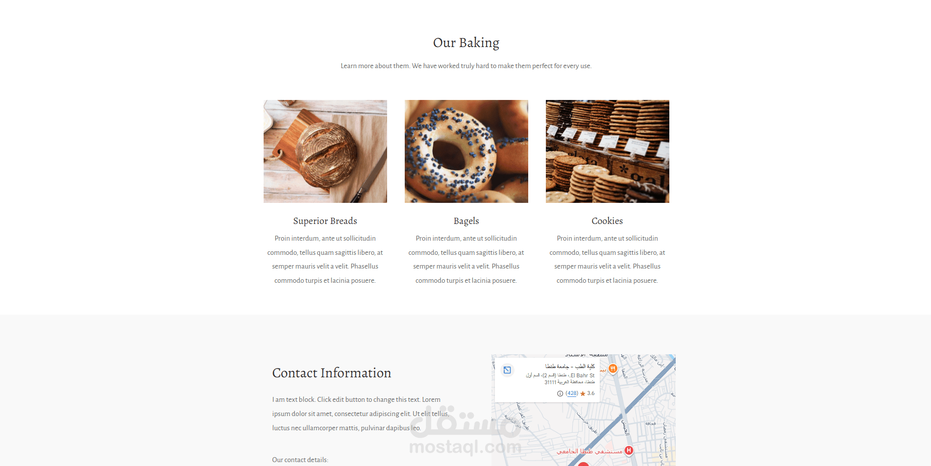 المشروع عبارة عن تصميم صفحة رئيسية (Landing Page) لمخبز، تعرض معلومات عن المطعم مثل المنتجات والخدمات والموقع، مع تصميم بسيط ومنظم يركز على تقديم المحتوى بشكل واضح للمستخدم.