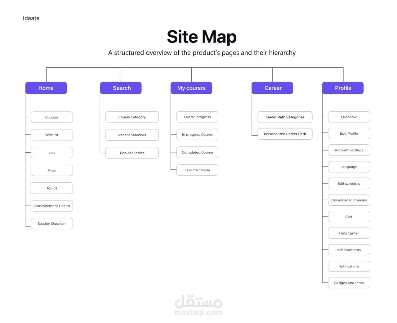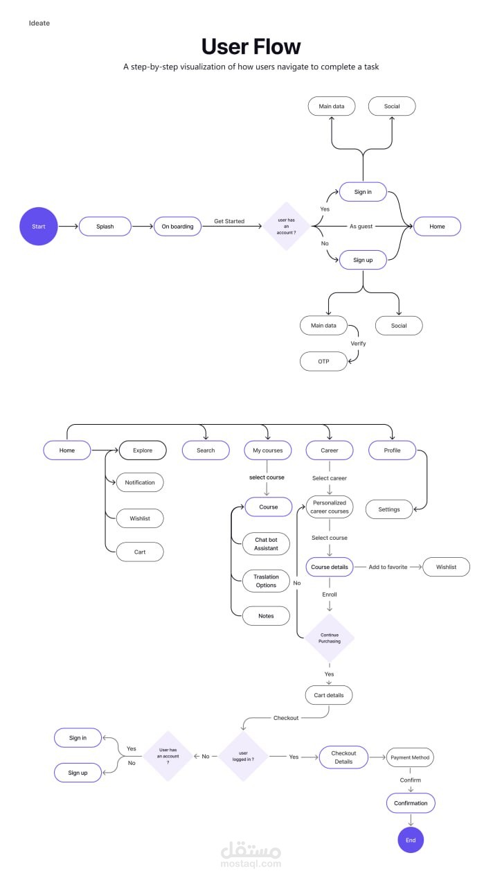 * تصميم هيكل المنصة وتدفق المستخدم (User Flow).