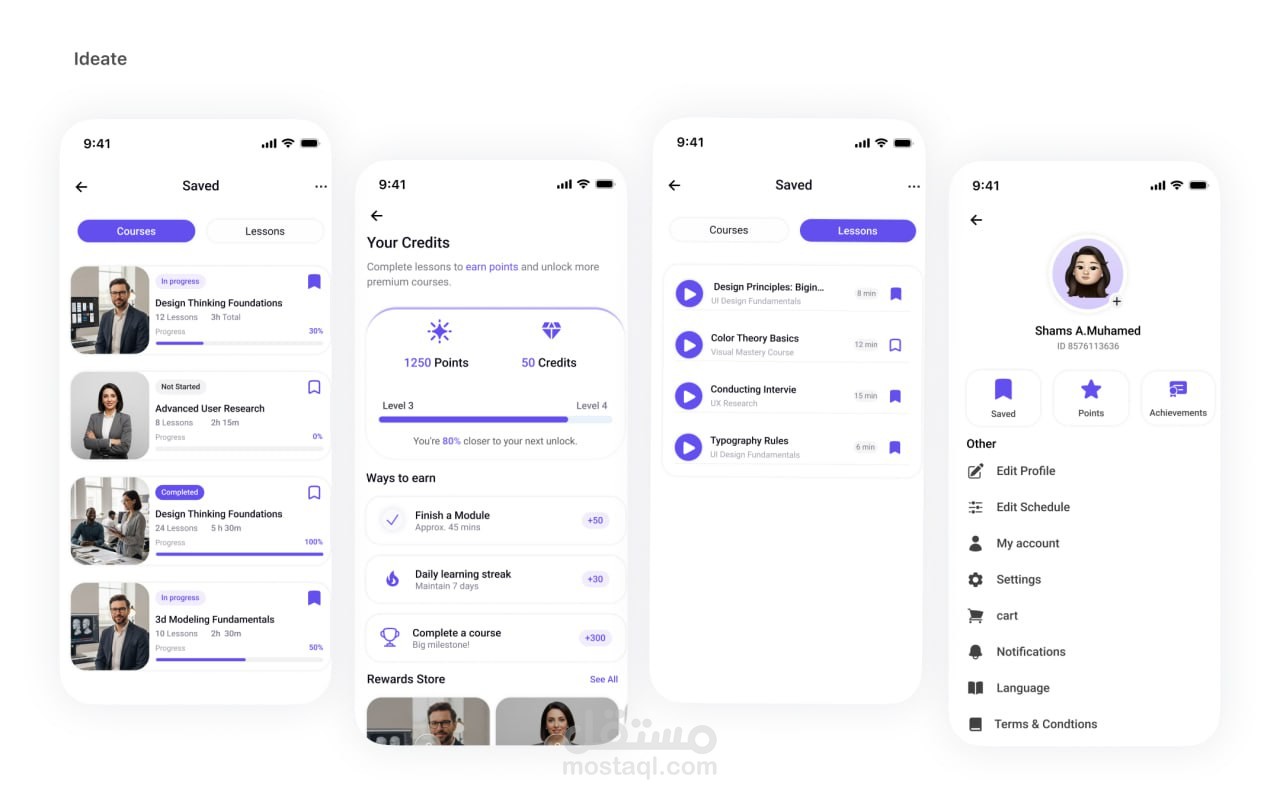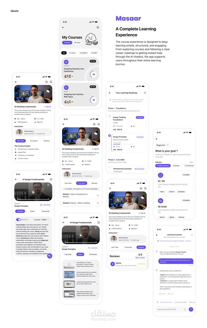 * تصميم واجهات نهائية (High-Fidelity UI) تعكس تجربة تعليمية واضحة وسهلة الاستخدام.