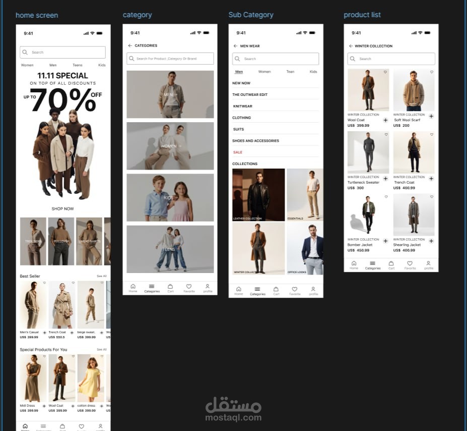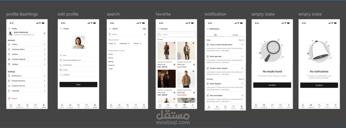 هذا المشروع عبارة عن UI Case Study لتطبيق أزياء (Fashion App)، حيث قمت بإعادة تصميم الواجهة بهدف تحسين تجربة المستخدم وجعلها أكثر أناقة وسهولة في التصفح.