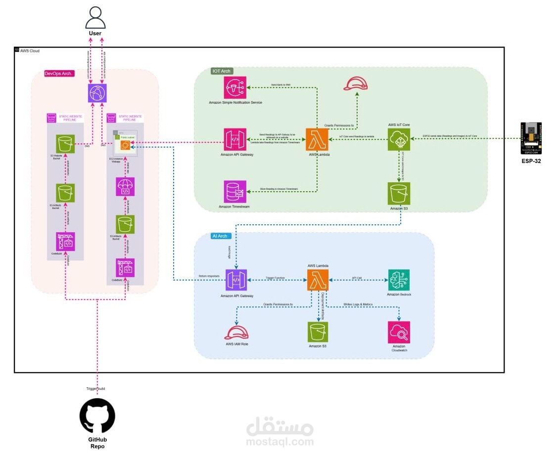 This project uses an ESP32-CAM module connected to AWS IoT Core via MQTT to capture images, upload them to AWS services, process them using Lambda functions, and control physical LEDs based on image analysis.then use Ai to analyes images , web to interfacing the project . Vision: Revolutionizing greenhouse management through IoT and AI Goal: Automated, efficient, and intelligent plant cultivation Impact: Reducing resource usage while maximizing yield