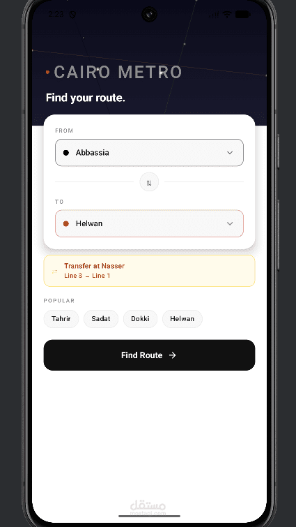 قمت بتطوير تطبيق أندرويد لمحاكاة نظام المترو يغطي 3 خطوط كاملة، ويتيح للمستخدم الحصول على معلومات دقيقة مثل الوقت المتوقع للوصول، تكلفة الرحلة، وعدد المحطات بين نقطتي البداية والنهاية. تم تصميم التنقل بين الشاشات بشكل سلس باستخدام Fragments و Navigation Component، وصممت واجهات المستخدم باستخدام XML لتقديم تجربة مستخدم تفاعلية وسهلة الاستخدام.
