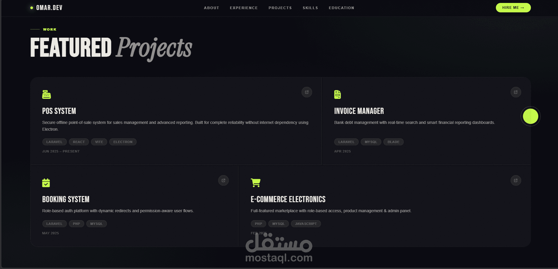 عرض المشاريع والتقنيات المستخدمة في كل مشروع.