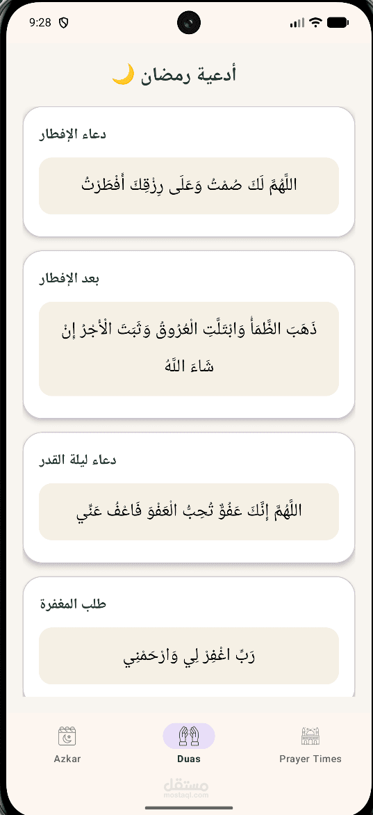 تطبيق رمضاني – رفيقك اليومي للأذكار والمواقيت