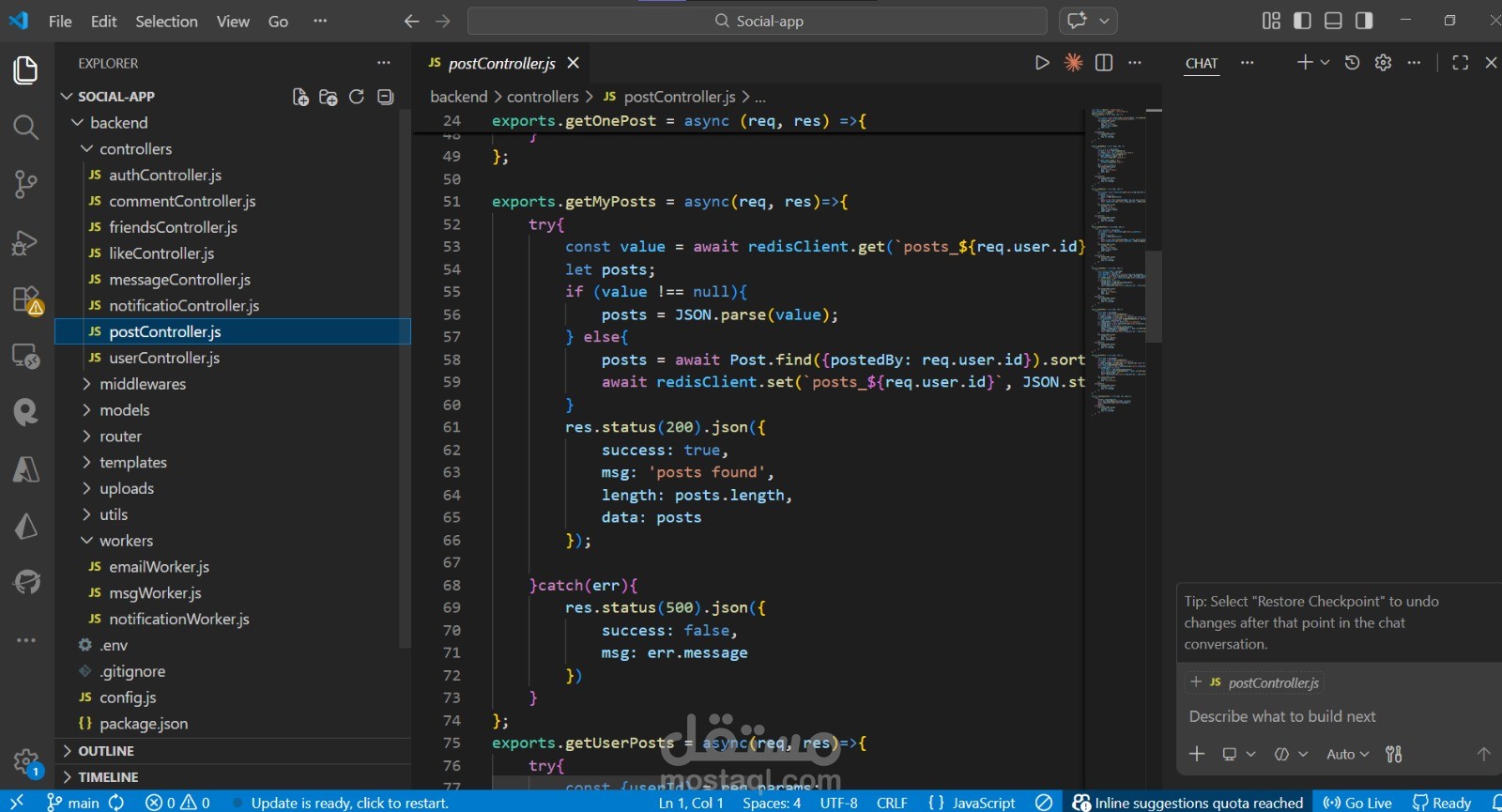 Authentication and security are implemented using JWT tokens and bcrypt for password hashing. The backend is built using Node.js and Express, while MongoDB is used to manage and store user and social data. To improve performance, Redis is used for caching frequently accessed data.