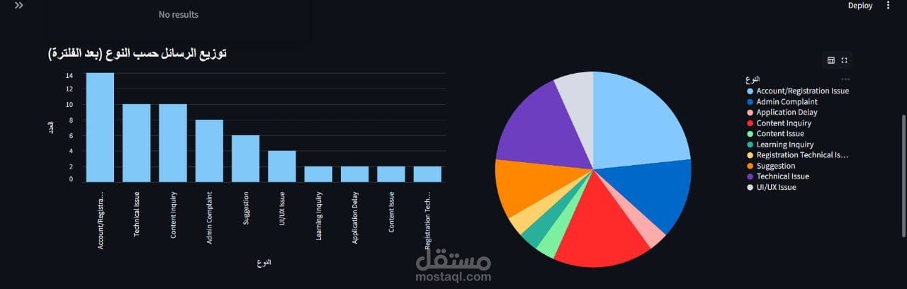 Real screenshots from the working system are attached — including message classification, priority detection, and dashboard analytics.